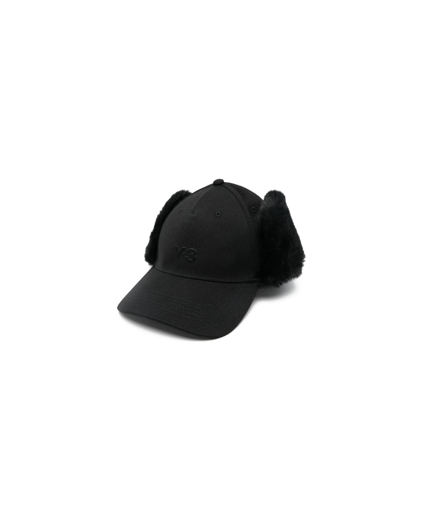 black embroidered logo curved peak faux fur trim six-panel crown adjustable strap