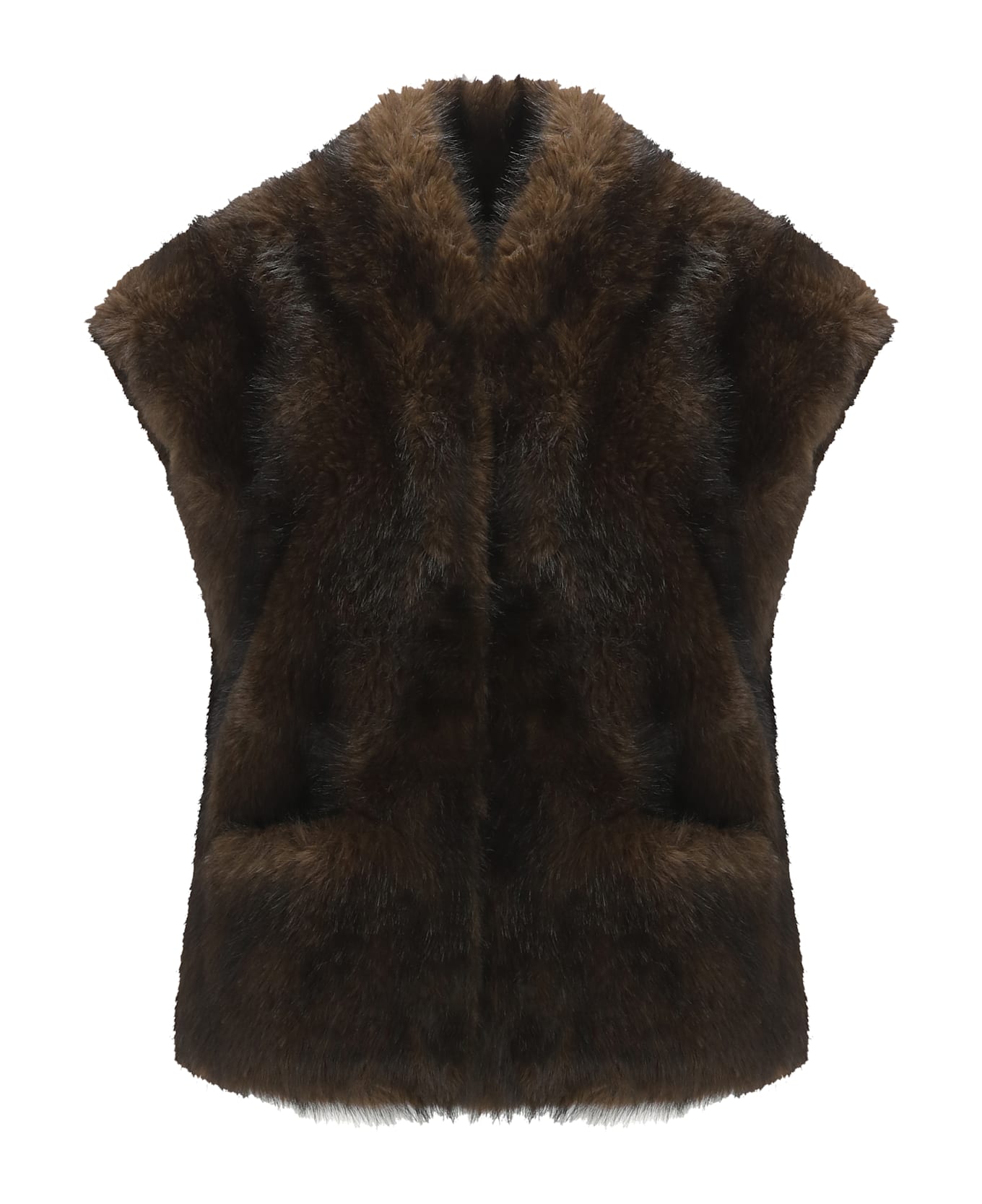 - Betta Corradi woman's brown synth fur vest - V neckline - Sleeveless - Front hook fastening - Two front welt pockets - Two vents side - All-over contrasting color black details