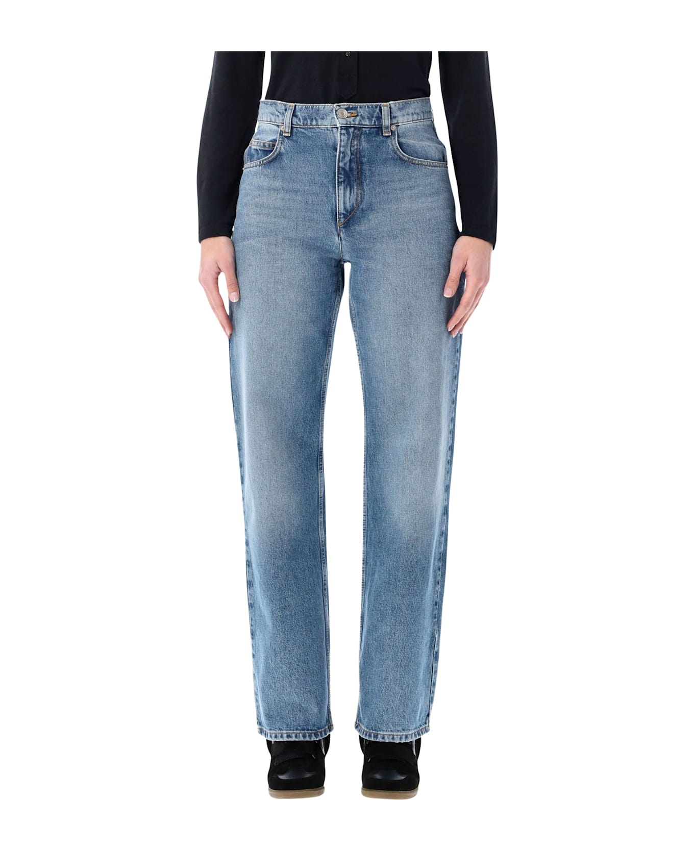 The Dromie Jeans By Isabel Marant Offer A Refined Take On The Classic 5-pocket Design, Featuring Relaxed Straight Legs And A Comfortable Mid-rise Waist. Crafted From Cotton Denim, They Include Belt Loops, A Concealed Zip Fly And An Engraved Metal Button. The Back Leather Label With Embossed Logo Adds A Subtle Signature To This Timeless Essential. Five-pocket Cotton Denim Jeans Relaxed Straight-leg Cut Mid-rise Waist With Loops Engraved Metal Button And Concealed Zip Fly Back Leather Label With Embossed Logo Alessandra Is 1,75 M And Wears Size 36