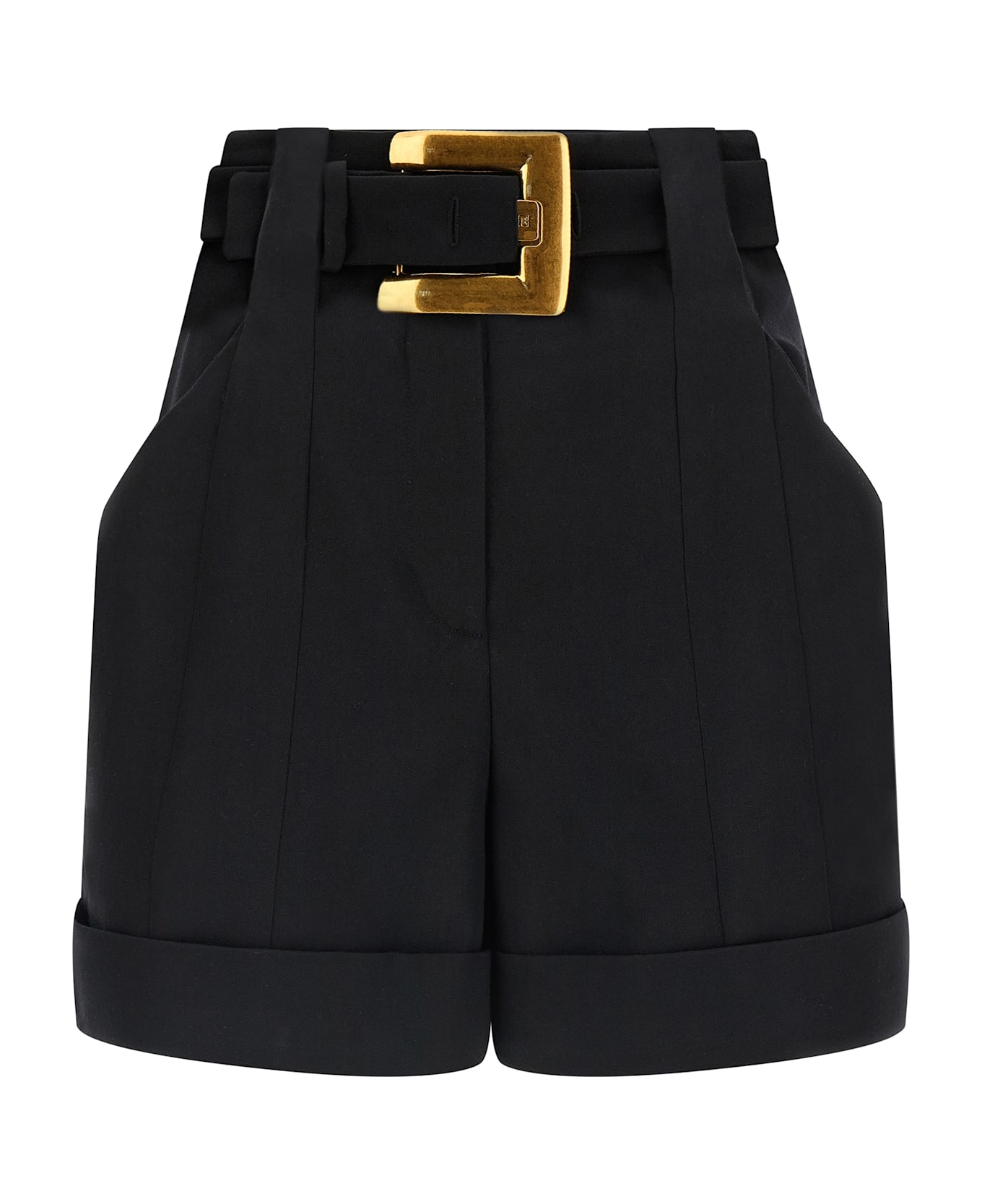 Grain de poudre wool shorts, high waist, front and back pin tucks, pockets, turn-up at the hem, belt with removable antiqued effect metal 'Anthem' buckle. Composition: 100% virgin wool