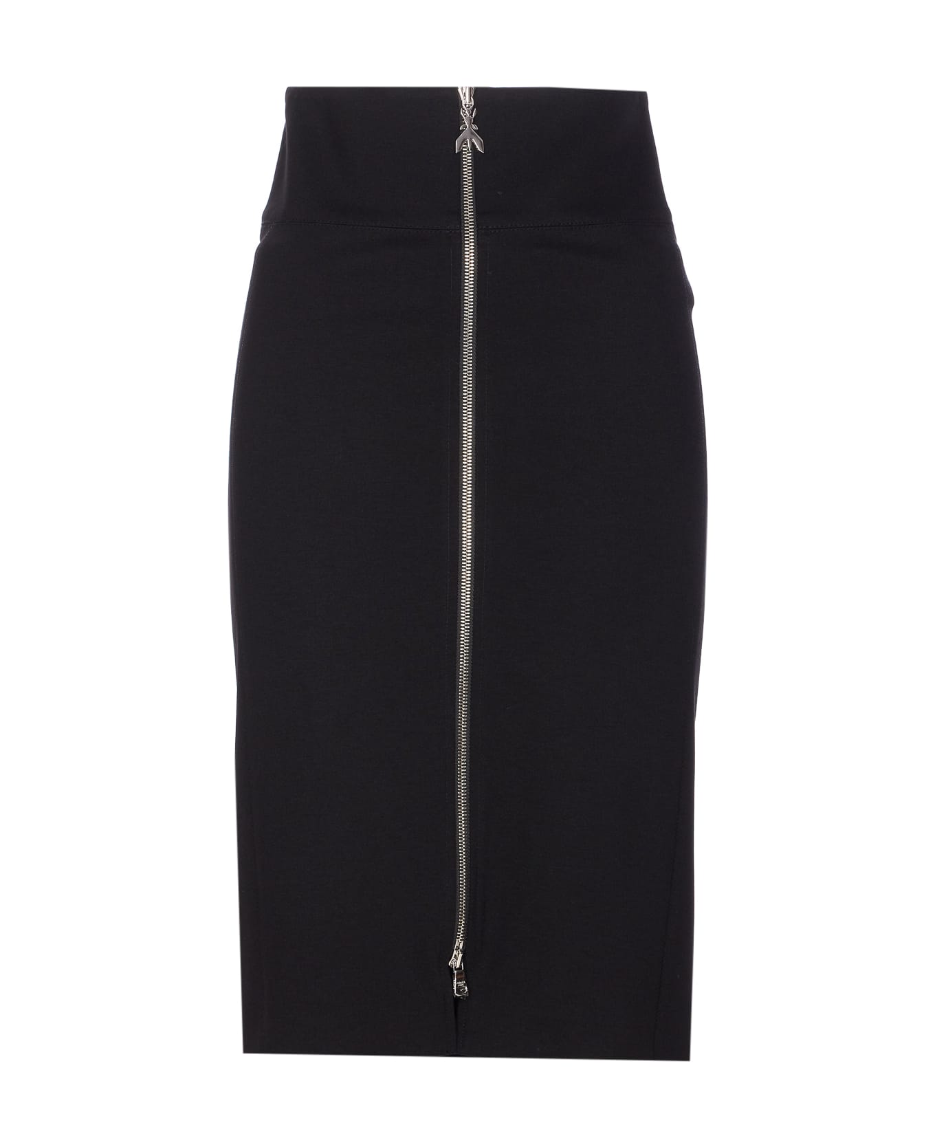 Patrizia Pepe black logo midi skirt, zip closure, back logo, essential model, silver zip Composition: 65% Viscose, 30% Polyamide, 5% Elastane