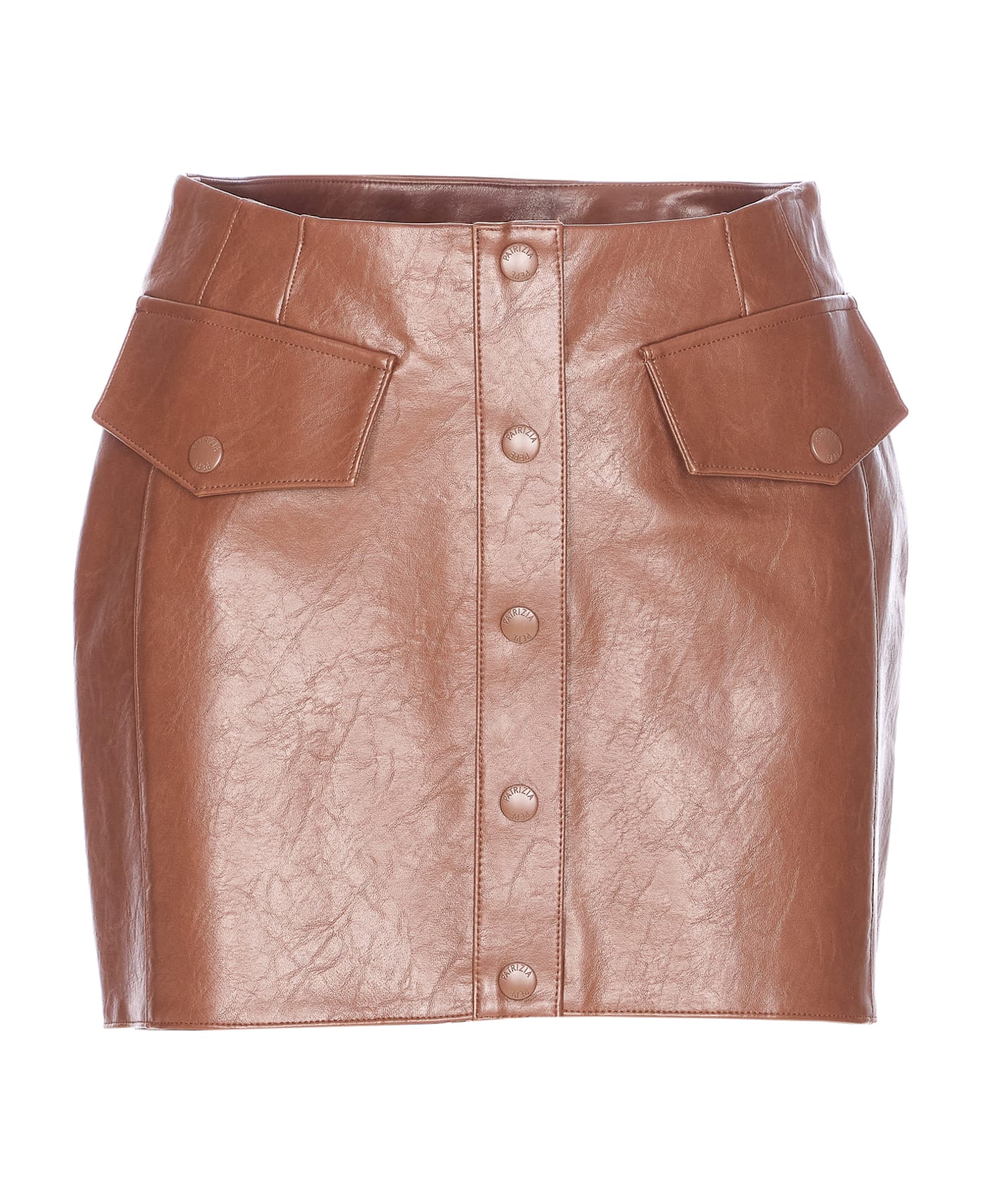 Patrizia Pepe brown mini skirt, buttons closure, patch logo on the back Composition: 100% Polyurethane, 100% Polyester