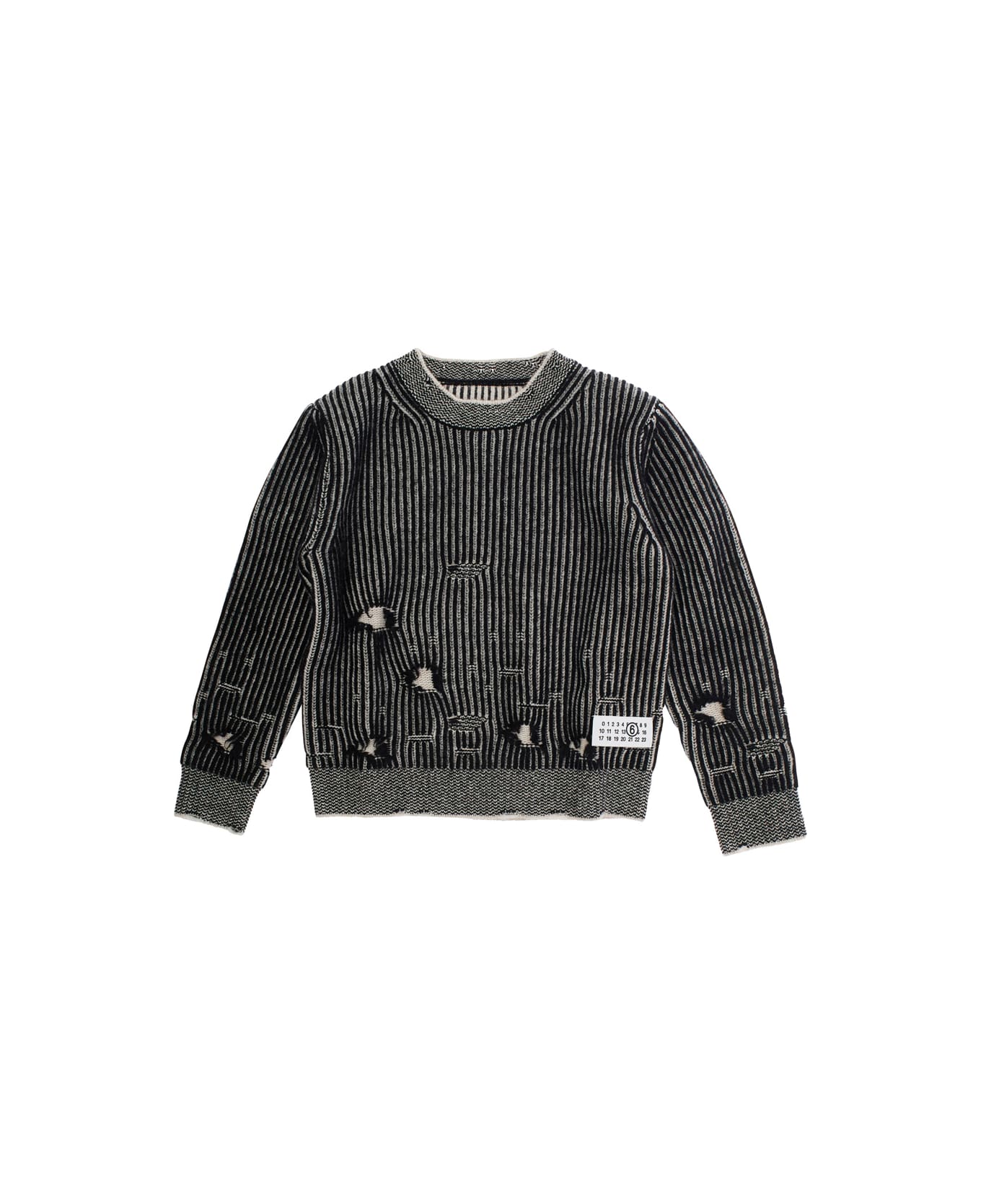 Black Sweater With Ripped Details And Logo Patch In Wool Boy