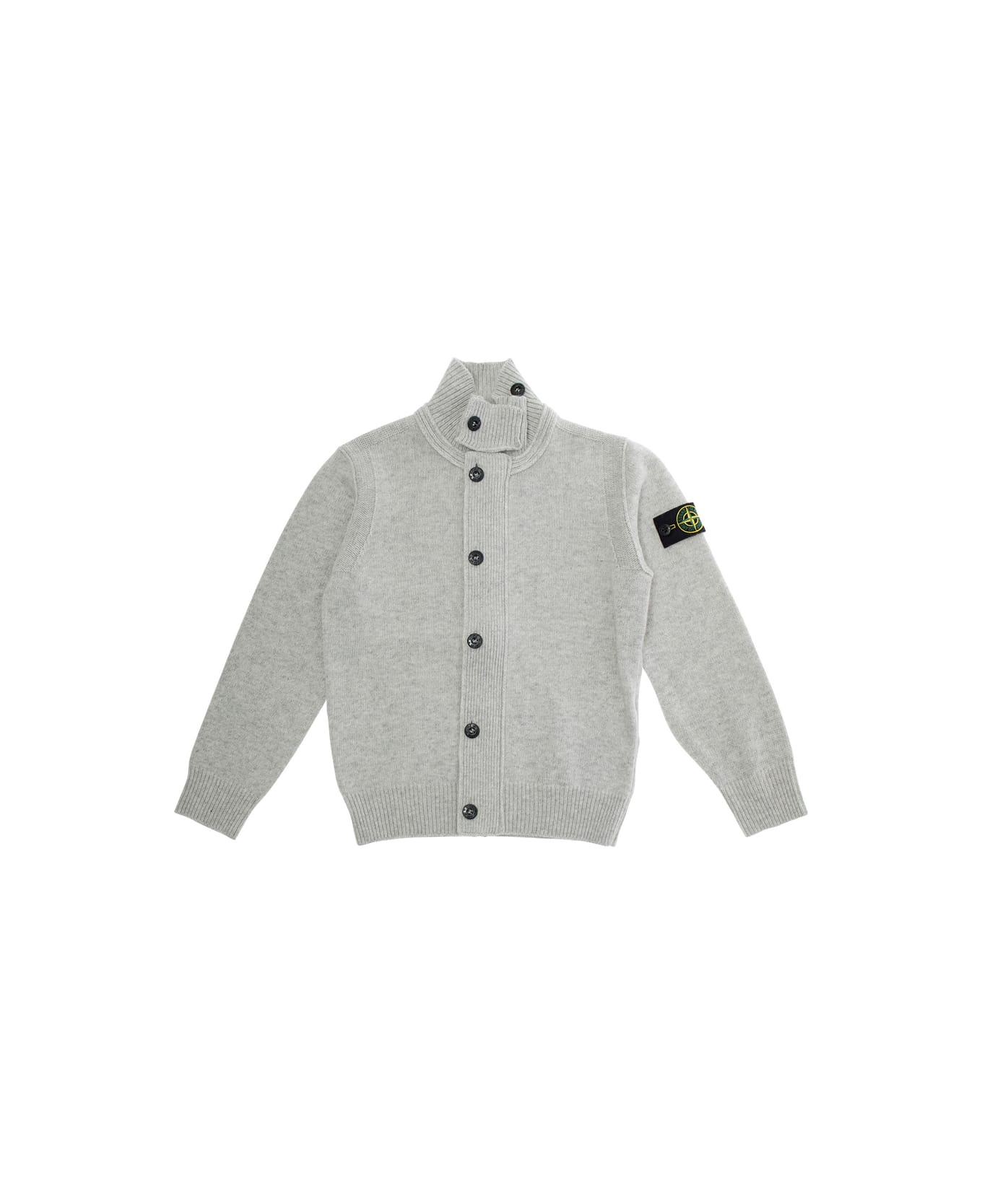 Grey Cardigan With High Neck And Logo Patch On The Sleeve In Wool And Cashmere Blend Boy