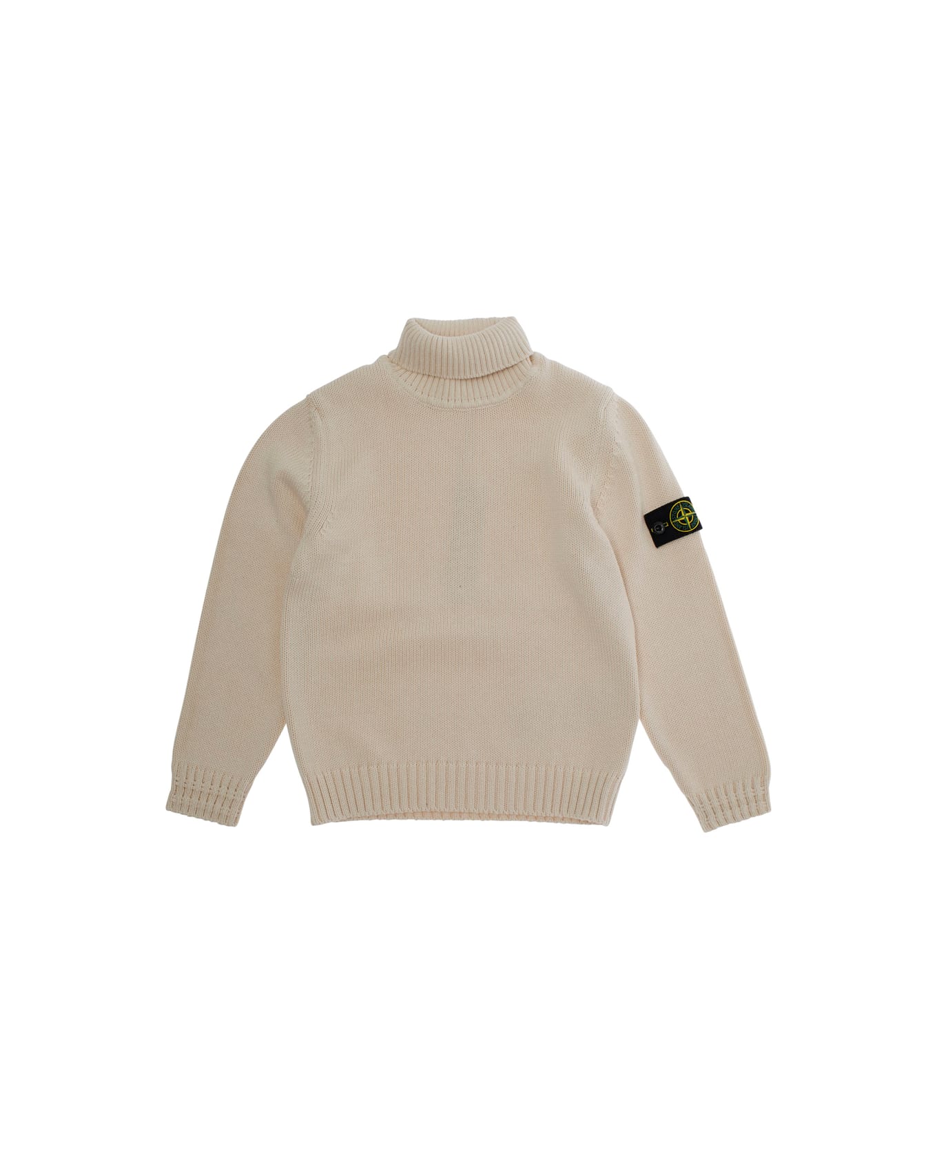 White Turtleneck Sweater With Ribbed Trims In Cotton Blend Boy