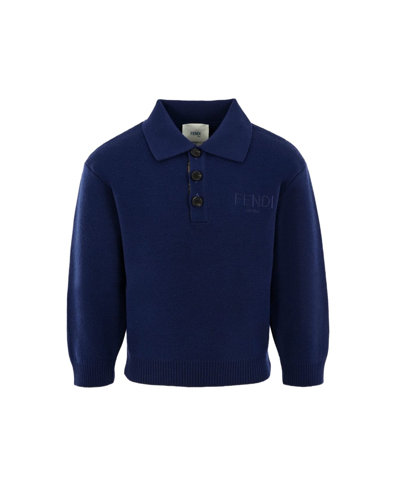 Features blue wool polo-style collar long sleeves embroidered logo button closure Composition 100% wool