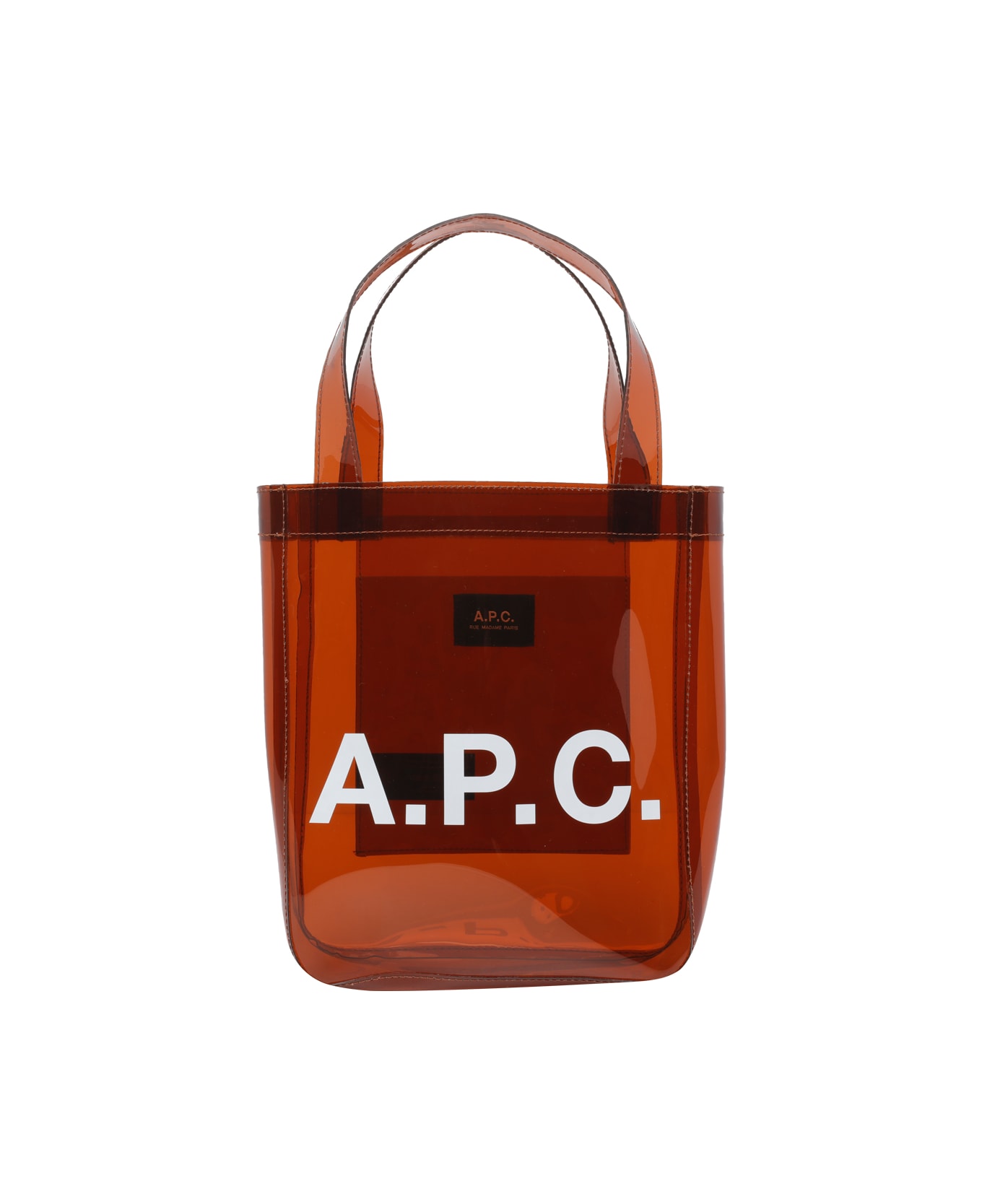 A. P. C. brown Small Lou tote bag, inner open pocket, 2 shoulder straps, frontal logo