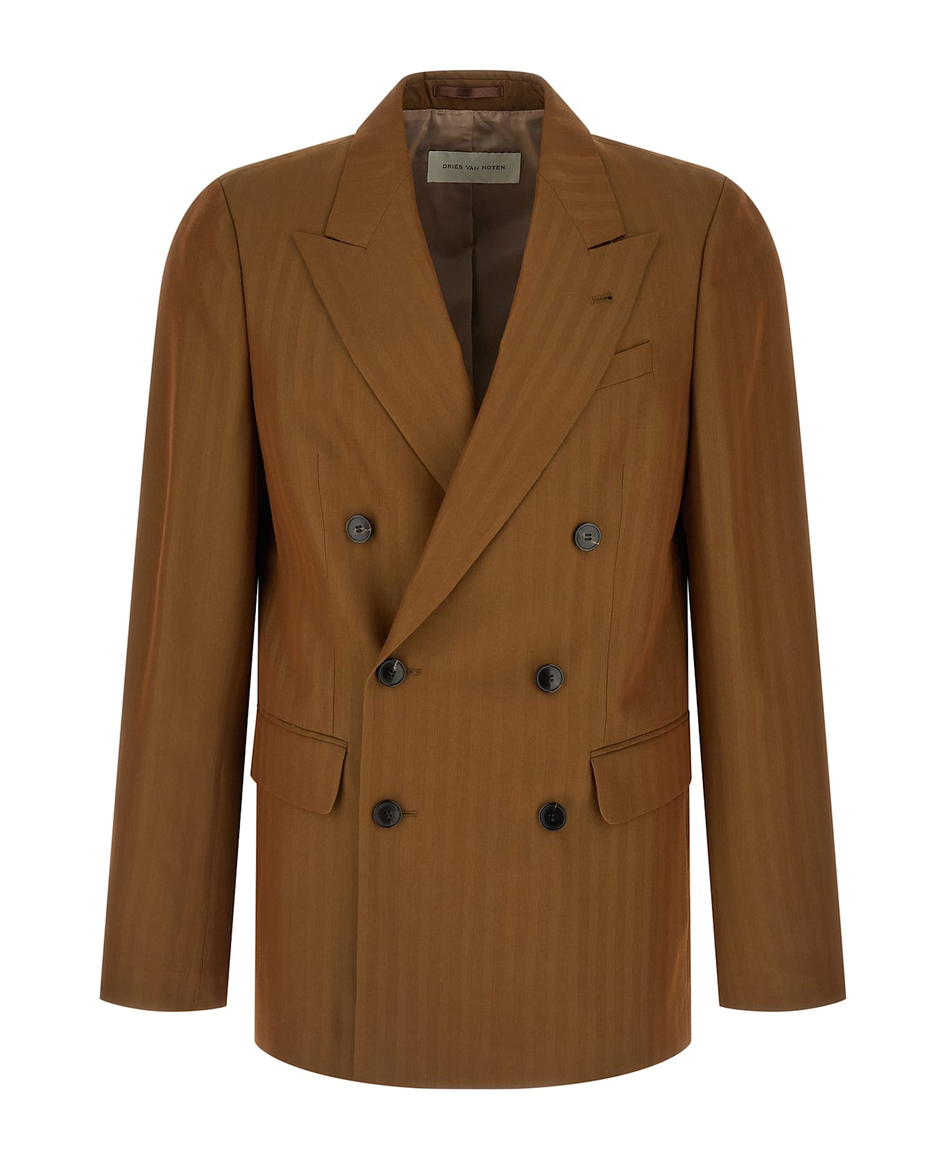 'Barry' double-breasted blazer in wool and viscose blend with pinstripe pattern, front button closure, peak lapels, breast pocket, flap pockets, structured shoulder strap, cuffs with open buttonholes, back slits, inner pocket, viscose lining.