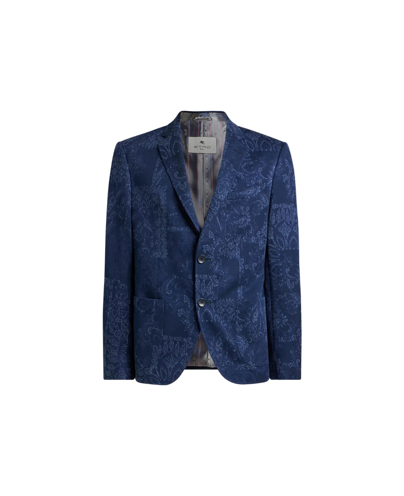 blue floral motif jacquard button fastening single-breasted flap pockets