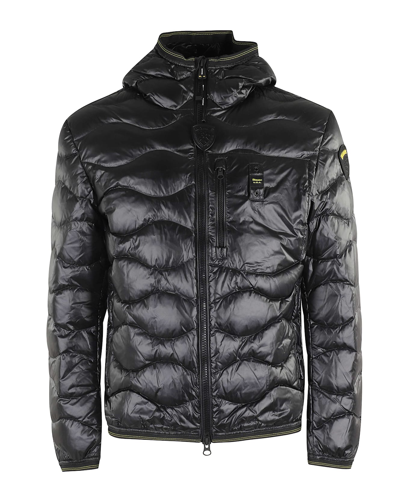 Wave down jacket - Blauer - Black color - Quilted fabric - Down lining - Hood - Flush chest pocket - Front zipper closure