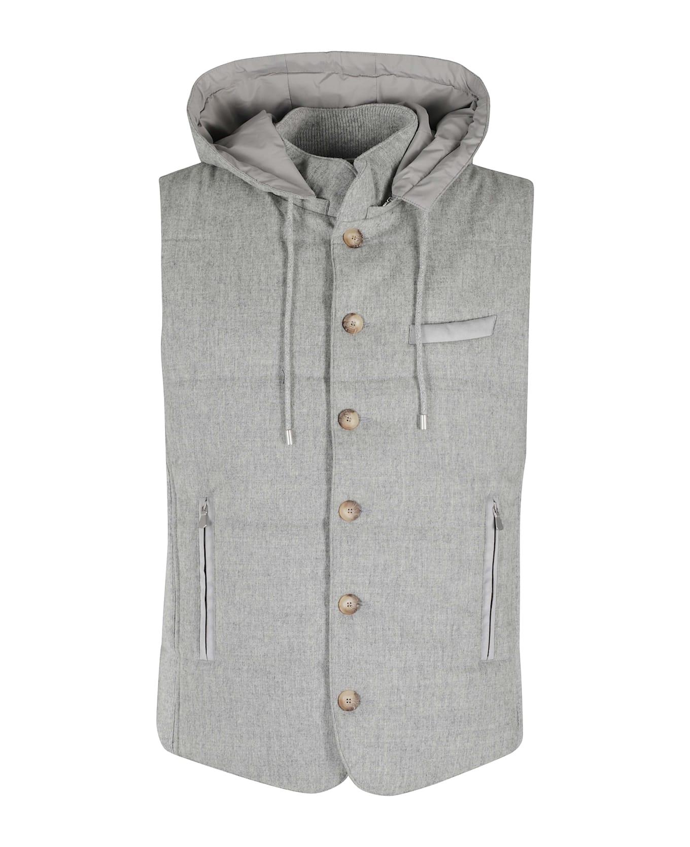 Vest - Gran Sasso - gray color - sleeveless - high collar - hood with removable drawstring - front button closure - zippered side pockets - slanted breast pocket