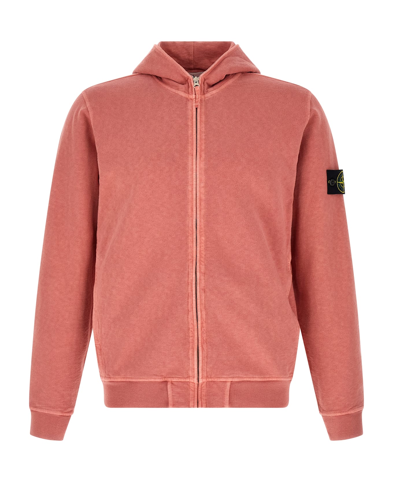 '6100032' hoodie in garment-dyed flamed-effect malfilé cotton with 'OLD' treatment, front zip closure, pockets, long sleeves with cuffs, logo badge, and headband on the hem. Composition: 100% cotton