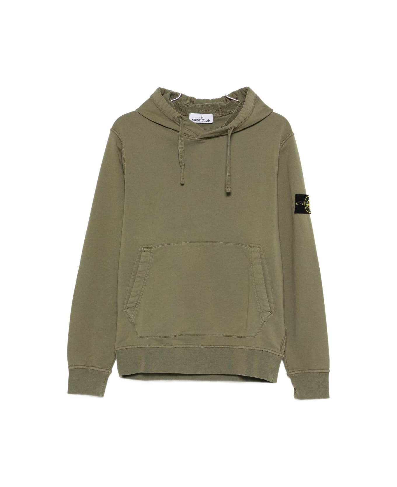 green logo patch pouch pocket ribbed hem ribbed cuffs