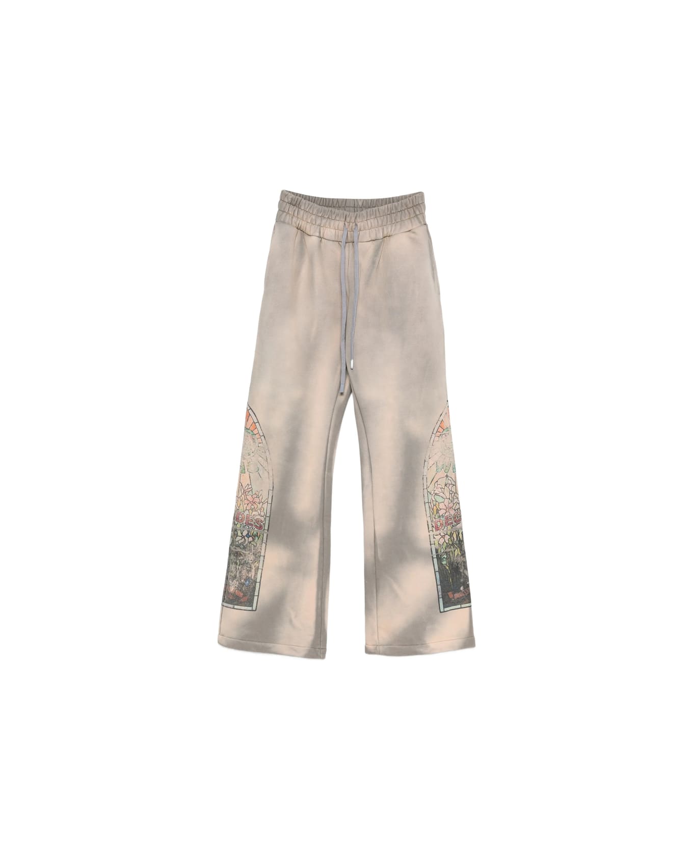 grey drawstring waist side graphic print wide leg elasticated hems back patch pocket