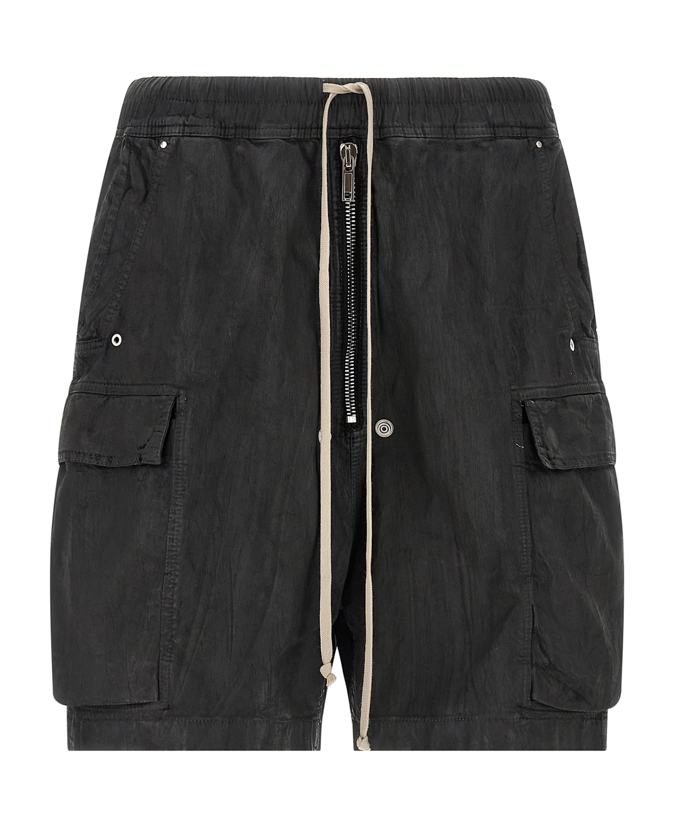 'Cargobela' bermuda shorts in cotton denim treated with foil layers, low crotch, side cargo pockets, adjustable drawstring elastic at the waist, zip flap, pockets. The natural aspects of this treatment cause the application of the film to be uneven, peel off and crack in some areas and will continue to do so with wear and abrasion. This is an intrinsic feature of this type of treatment and is a desired visual aspect that adds to the uniqueness of each piece and should not be considered a defect.