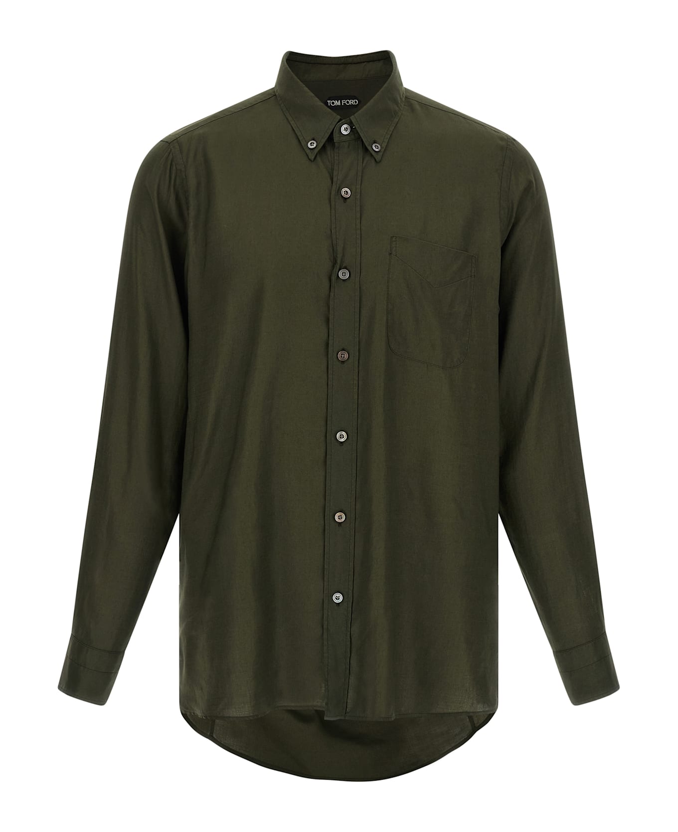 Fluid gabardine shirt with button-down style, pocket, front button closure, long cuffed sleeves. Composition: 100% lyocell