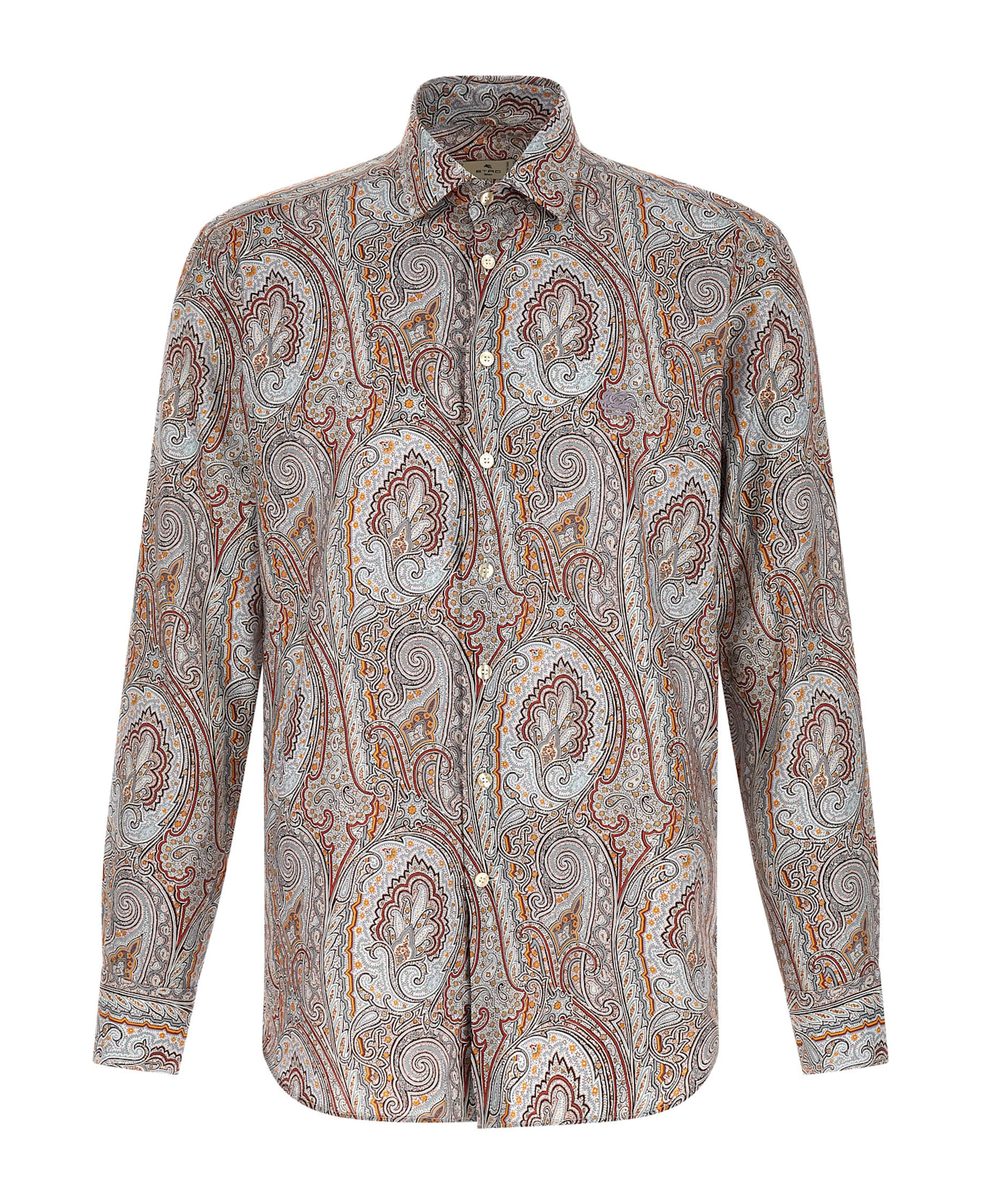 All-over floral Paisley floral satin shirt, front button closure, long cuffed sleeves. Composition: 100% cotton
