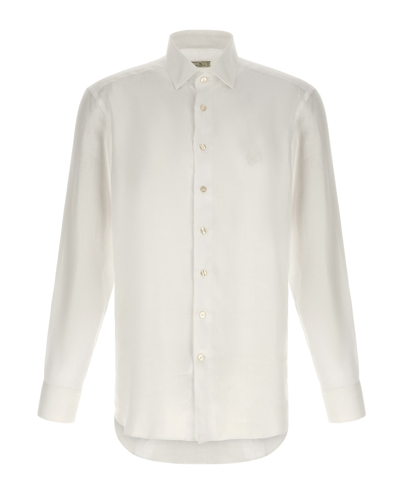 Linen shirt, tone-on-tone 'Pegaso' embroidered logo, front button closure, long cuffed sleeves. Composition: 100% linen