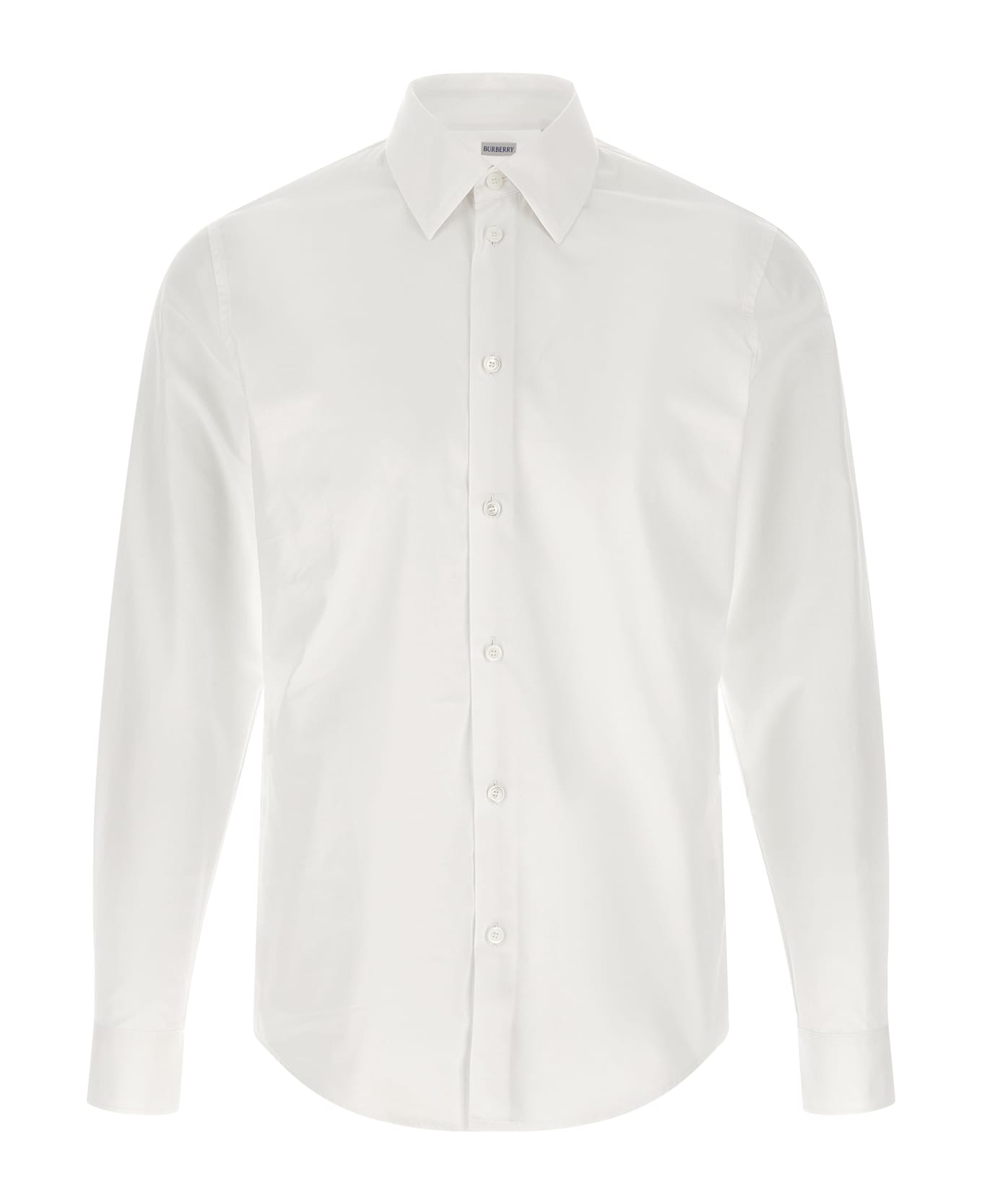 'Sam' cotton poplin shirt with tone-on-tone 'Equestrian Knight Design' embroidery on the front, Burberry Check grosgrain piping button closure, long cuffed sleeves. Composition: 100% cotton