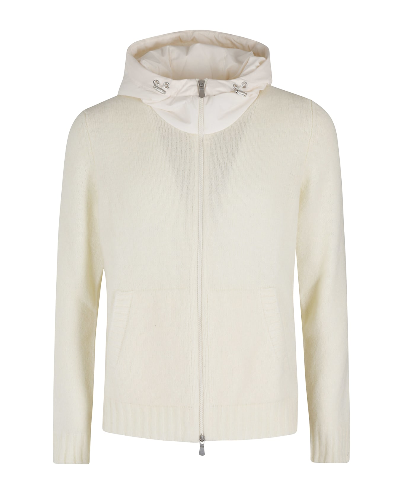 Cardigan - Gran Sasso - white color - nylon drawstring hood - center zipper closure - kangaroo pockets - ribbed trim