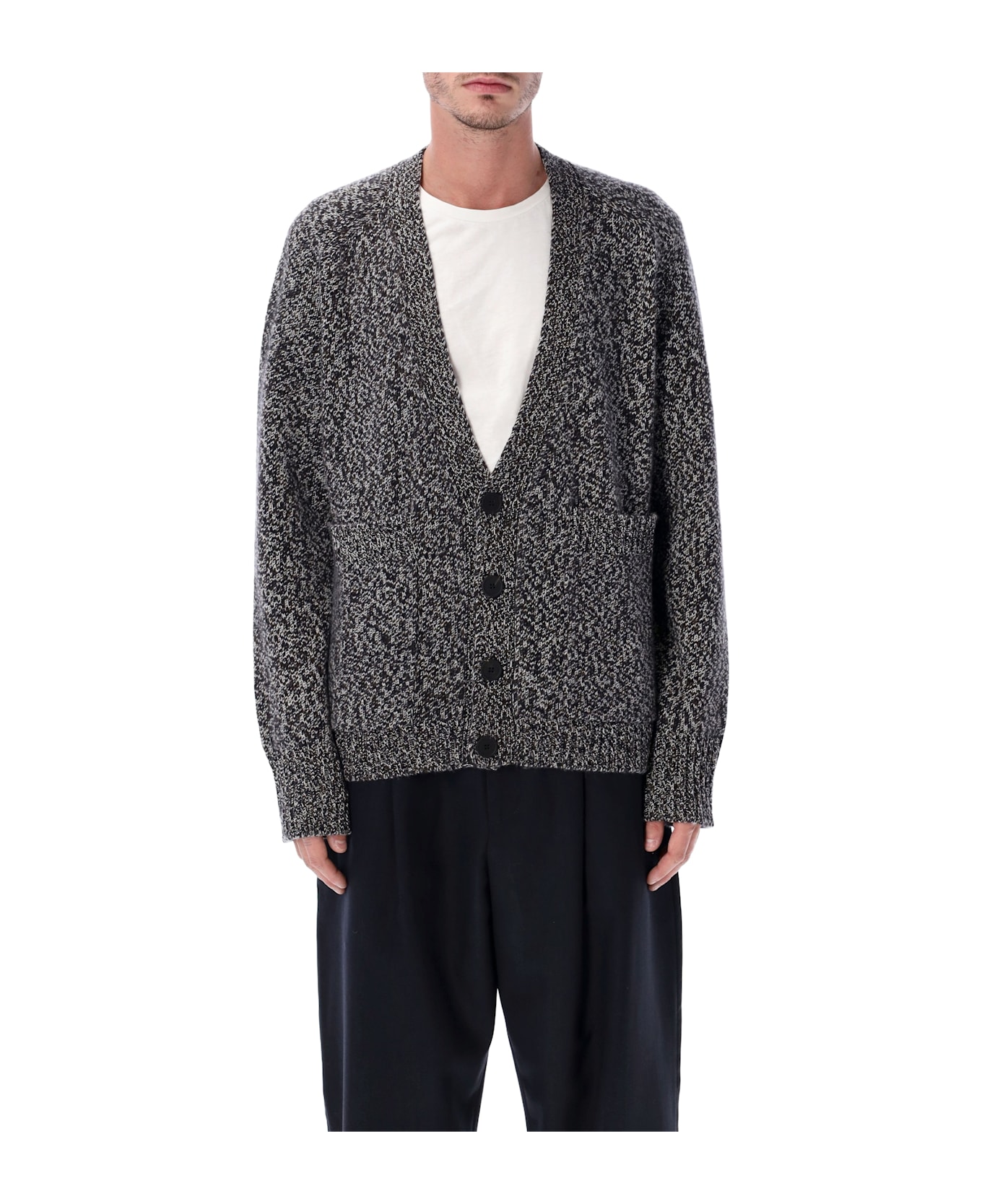 Studio Nicholson s Sen Cardigan Elevates A Timeless Knitwear Silhouette Through Volume And Texture. Knitted In England From Pure Lambswool, It Features A Distinctive Mouline Finish Created By Twisting Contrasting Yarns For A Richly Dappled Effect. Its Substantial Weight And Soft Hand Feel Make It Ideal For Refined Layering And Everyday Comfort. Mouline Two-tone Knit Texture Button-front Closure Front Patch Pockets Ribbed Hem And Cuffs Relaxed, Structured Fit Andrea Is 1,90 M And Wears Size L
