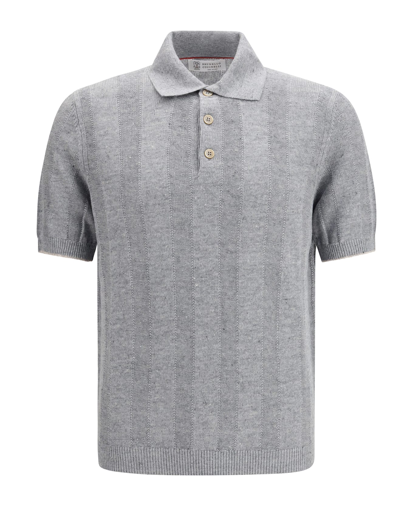 The cotton polo sweater by brunello cucinelli is an elegant and sophisticated garment that combines tradition and modernity. the classic ribbed collar and three-button front closure are typical polo details, giving the design a classic touch. ribbed hems complete the look with a structured accent. the vertically striped knit design gives the garment a dynamic and contemporary look, creating a visual effect that slims the figure. Composition: 100% % Cotton