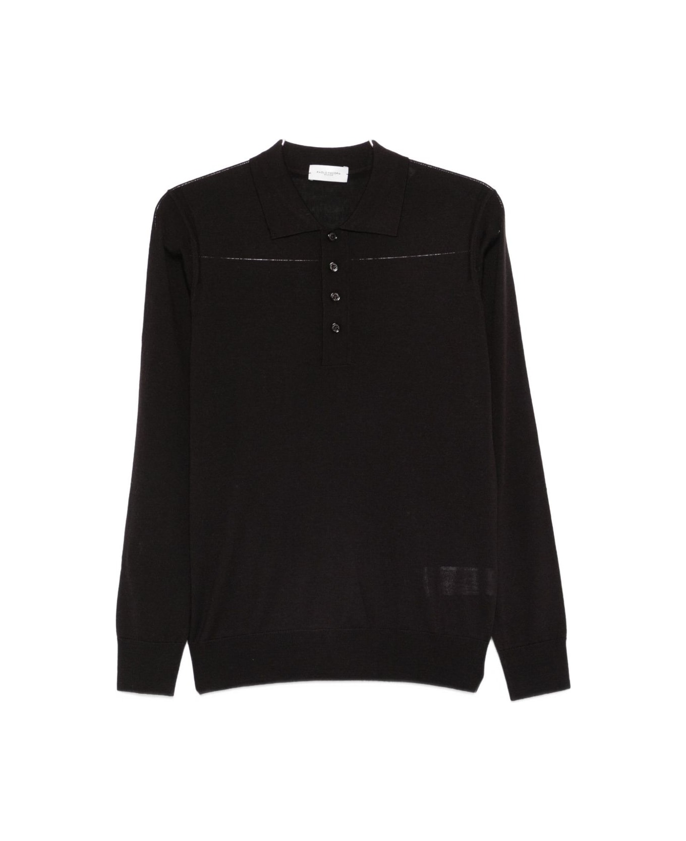 Our team selected this model for its high-quality style and low environmental impact. Paolo Pecora Long-sleeved polo Features Burgundy Long sleeves Cropped front button placket Polo-style collar Ribbed trim Composition 100% virgin wool