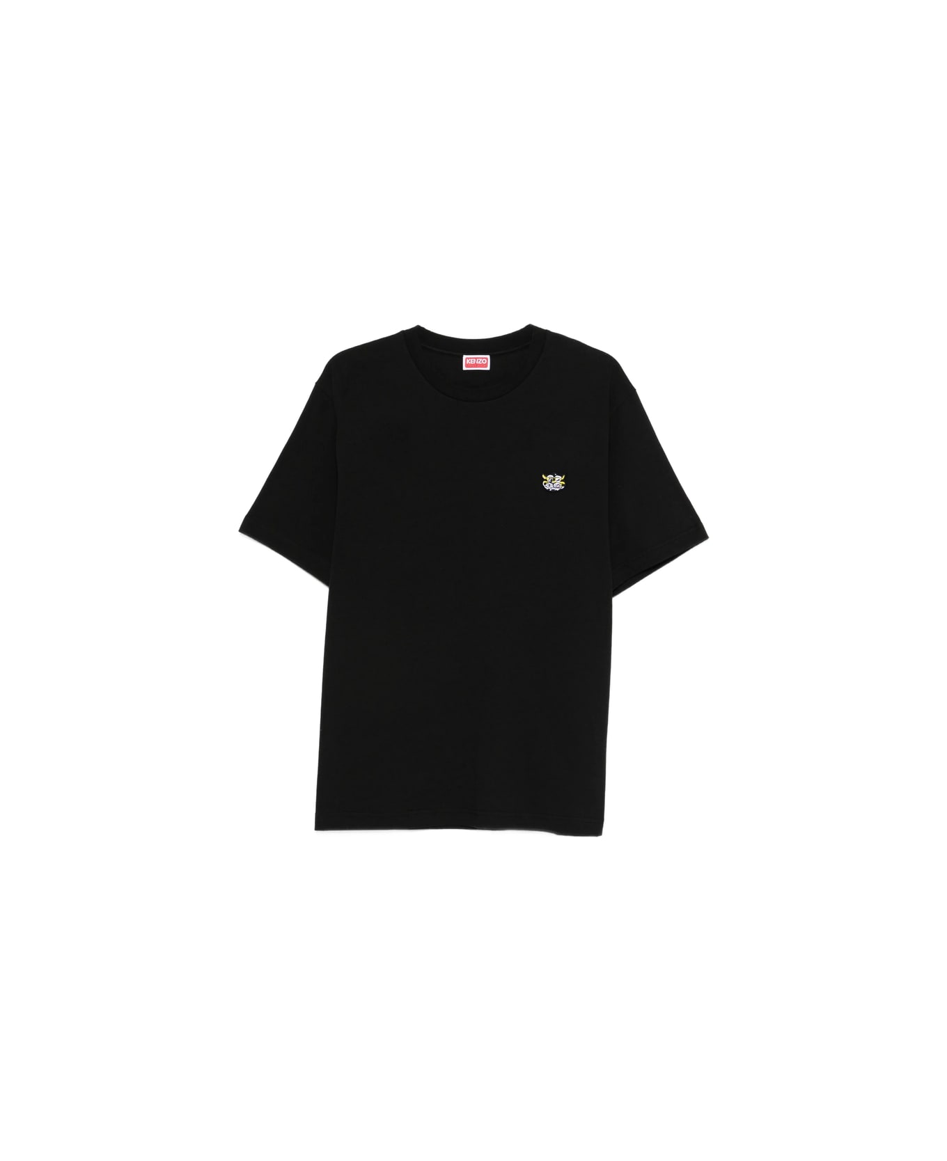 black embroidered patch crew neck short sleeves cotton