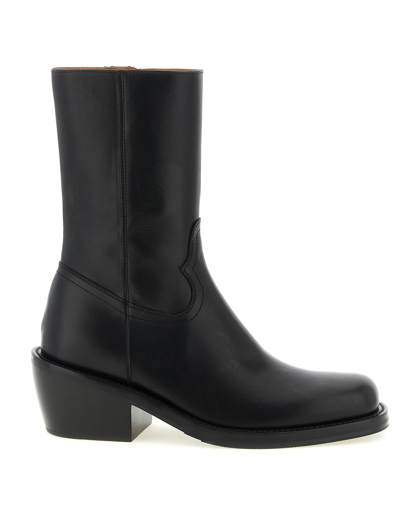 Leather ankle boots, western model, square toe, side zip closure, Cuban heel, leather sole.