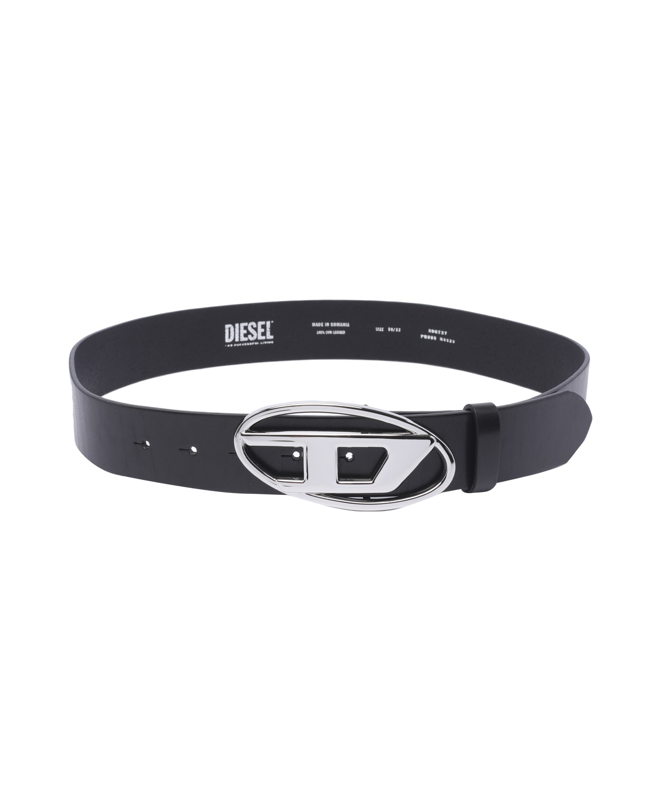 Diesel black logo belt, frontal plaque D logo detail Composition: 100% Calf Leather