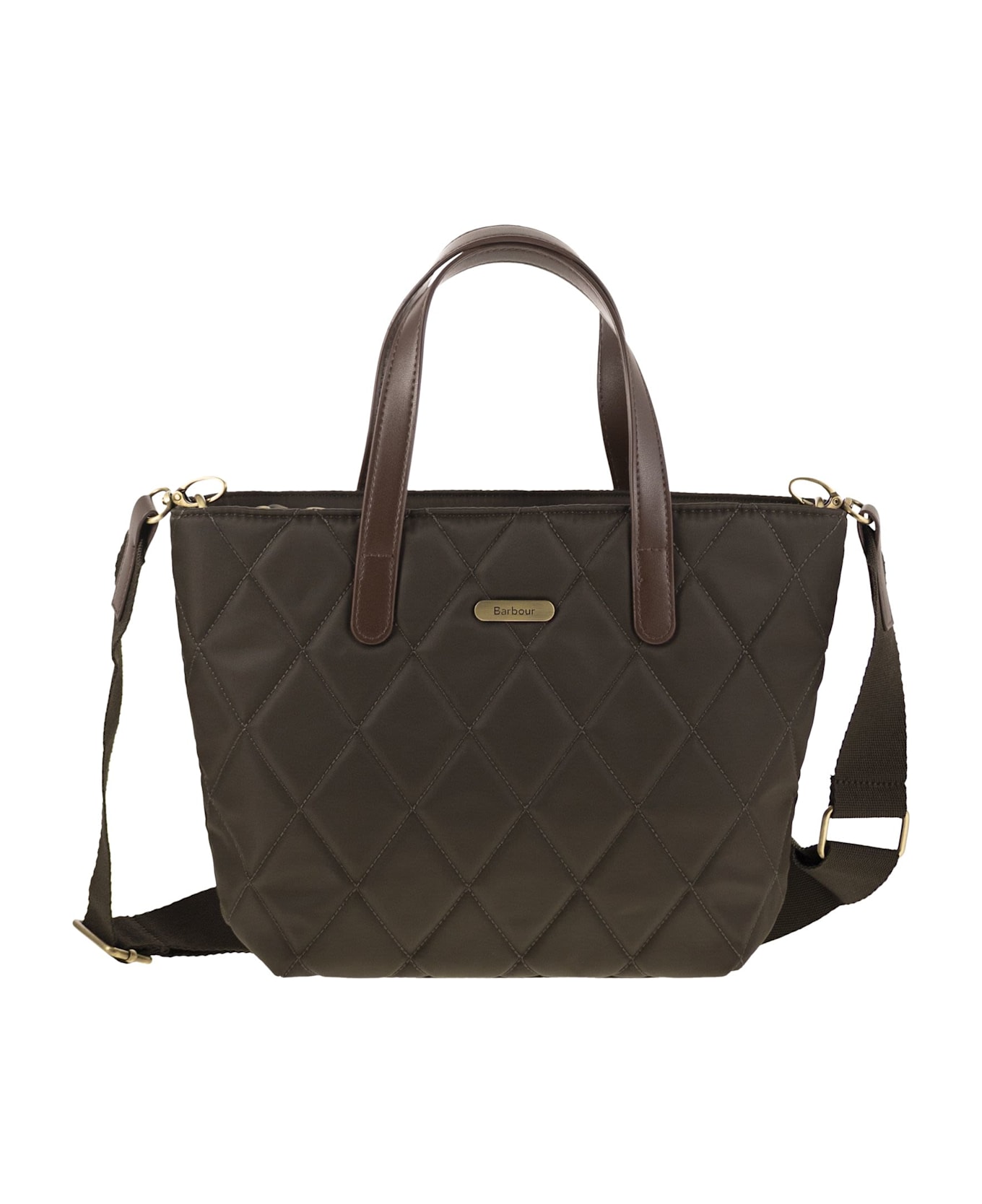 An emblem of British style, Barbour's quilted tote is perfect for carrying all the essentials to get you through the day. Featuring leather effect handles and a matching logo badge on the front. The tote is completed with an adjustable and detachable shoulder strap. - Open internal pocket - Zip closure - Adjustable and detachable shoulder strap DESIGNER ID: LBA0431 LBA OL75