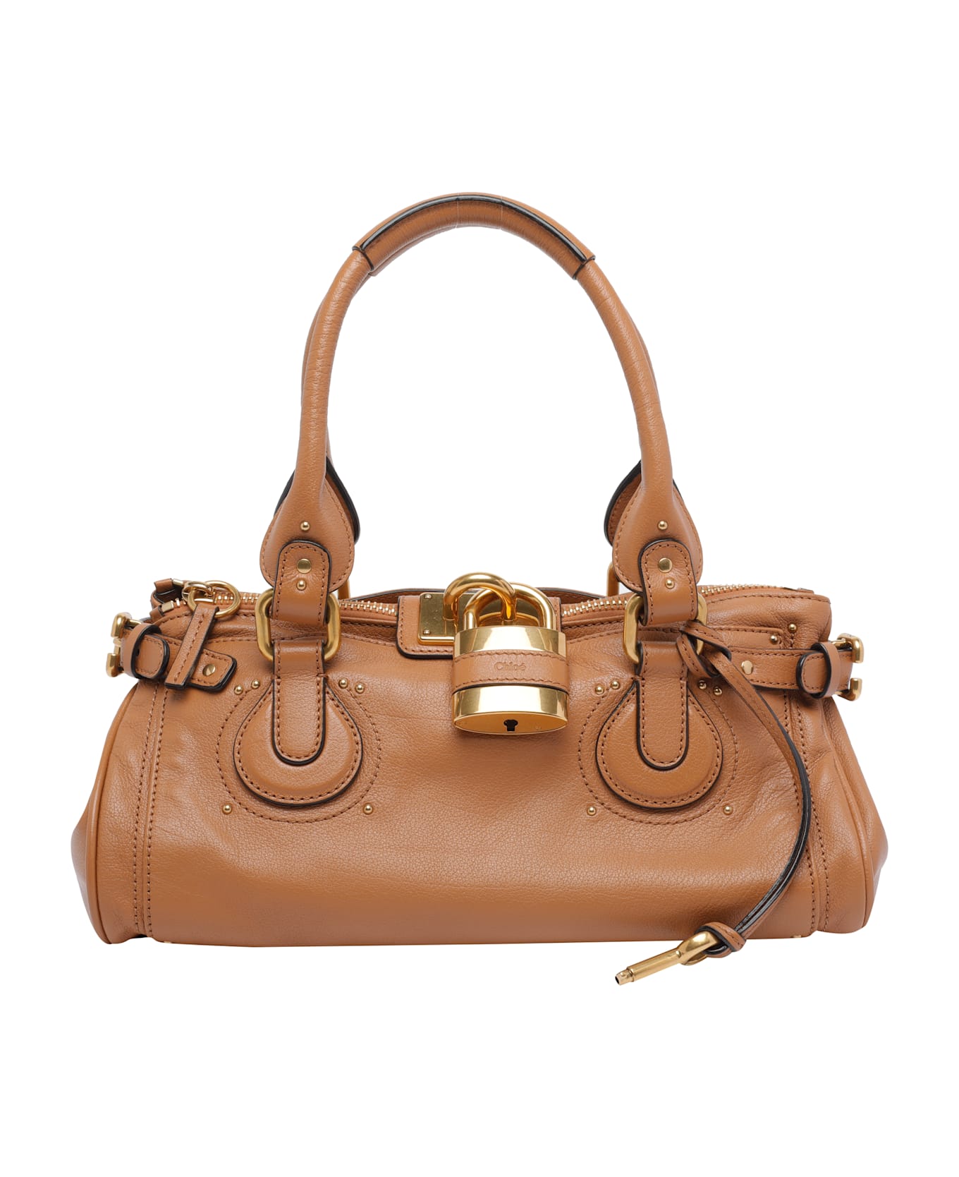 Chloe' brown Paddington handbag, zip closure, inner zipped pocket, 2 external open pockets, 2 handles, frontal maxi lock detail Composition: 100% Buffalo Leather