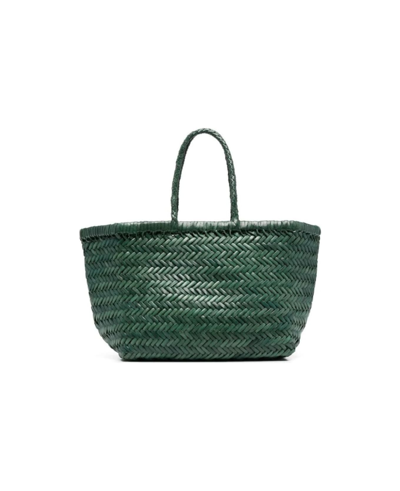 Green Handbag With Two Top Handles And Woven Design In Leather Woman