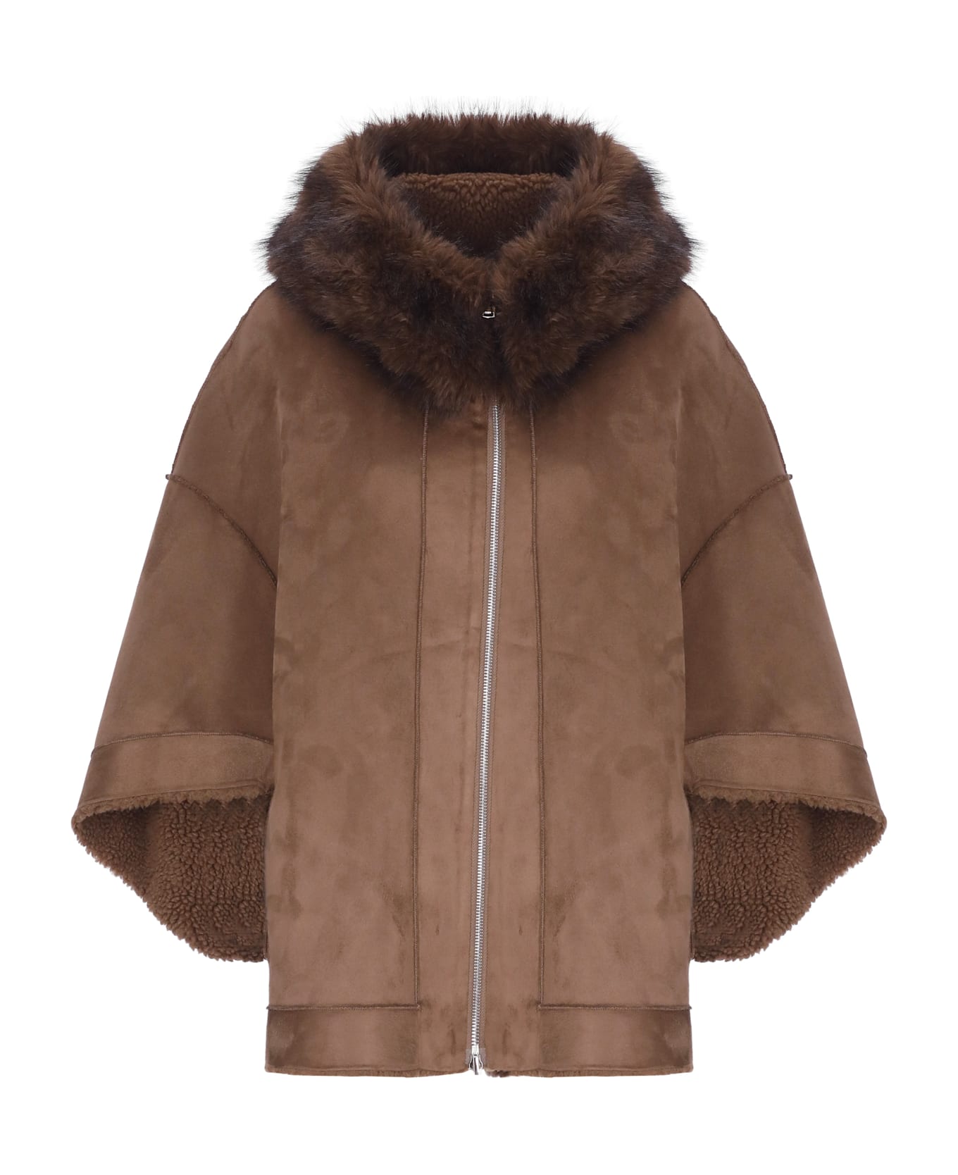 - Betta Corradi woman's brown reversible synthetic leather coat - Hood with faux fur - Long sleeves - Two side slit pockets - Front zip fastening