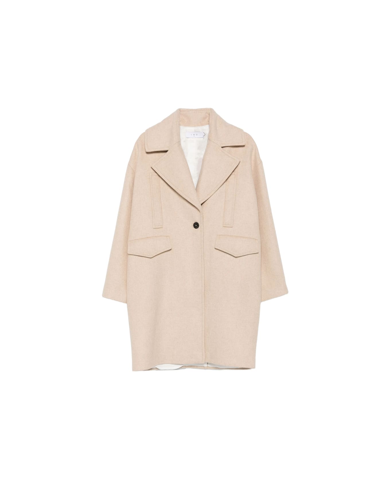 beige button fastening flap pockets notched lapels long sleeves straight hem
