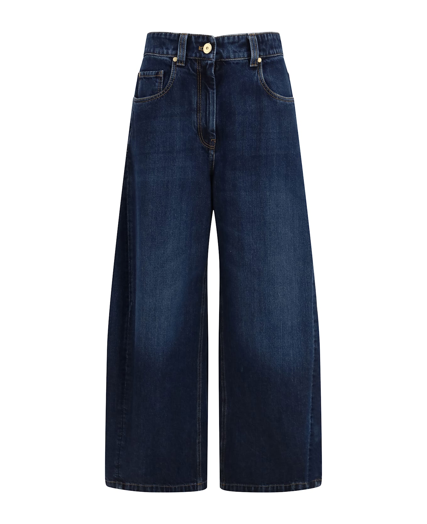 The barrel-leg jeans by brunello cucinelli reinterpret classic denim through the brand s refined, understated aesthetic. crafted with a sculptural barrel silhouette, they feature a traditional five-pocket construction, belt loops, and contrast stitching that enhances the clean lines of the design. a front button fastening completes this elevated everyday essential, blending casual attitude with meticulous craftsmanship.