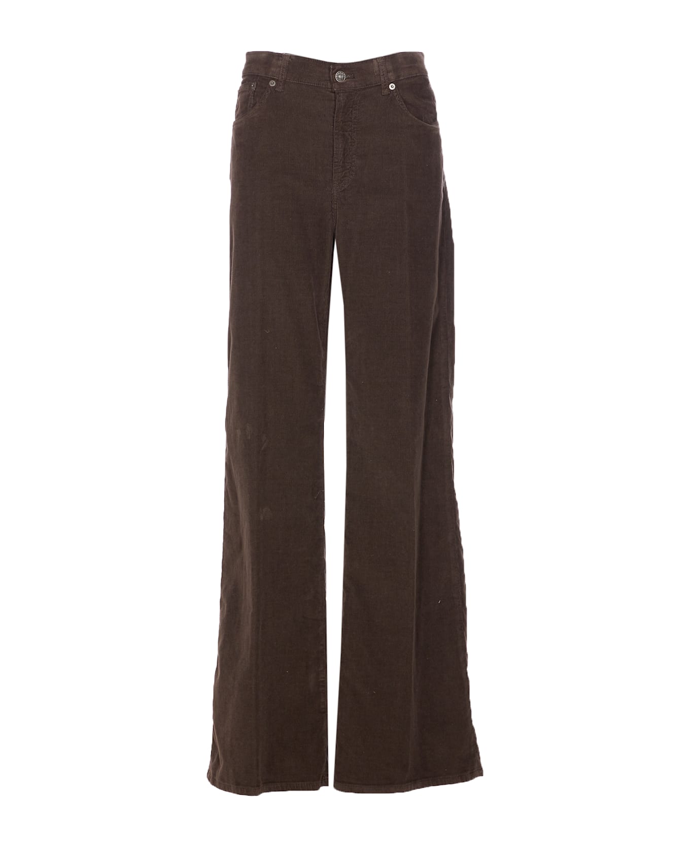 Dondup brown Amber jeans with frontal zip and button closure, 5 pockets, patch logo on the back, wide leg fit, velvet effect Composition: 66% Cotton, 32% Lyocell, 2% Elastane