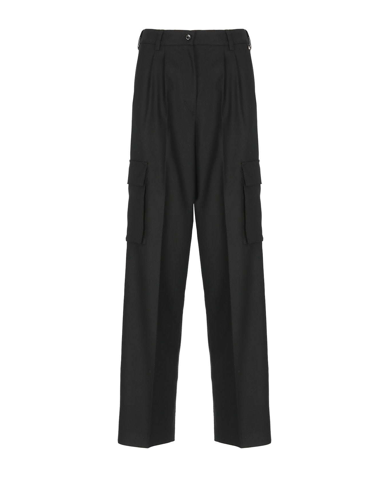 - Herno women's black cargo pants - Straight fit - Pleated detailing - Button fastening - Two side cargo pockets with flaps Composition: 43% Wool, 28% Viscose, 27% Polyester, 2% Elastan