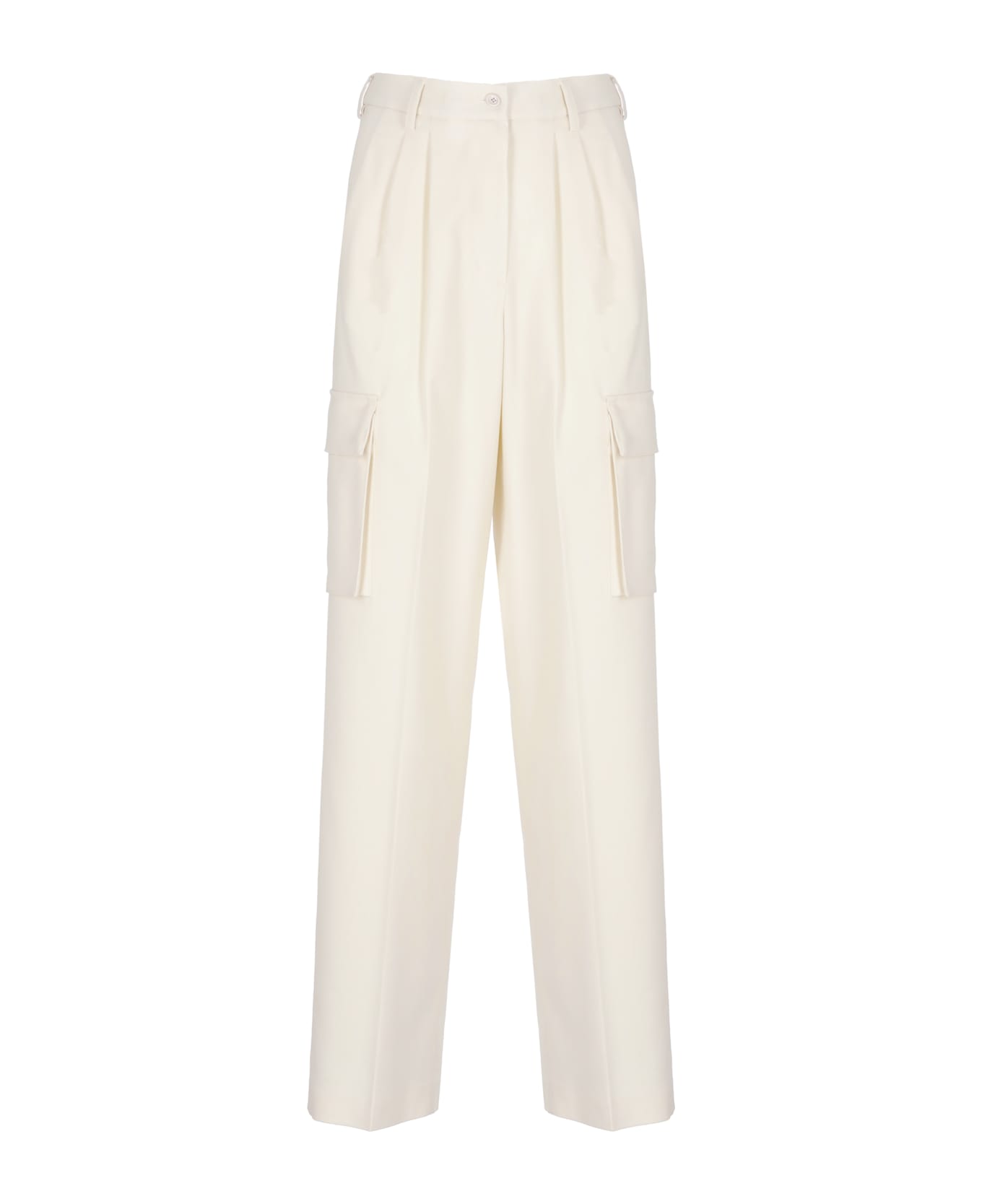 - Herno women's cream cargo pants - Straight fit - Pleated detailing - Button fastening - Two side cargo pockets with flaps Composition: 43% Wool, 28% Viscose, 27% Polyester, 2% Elastan