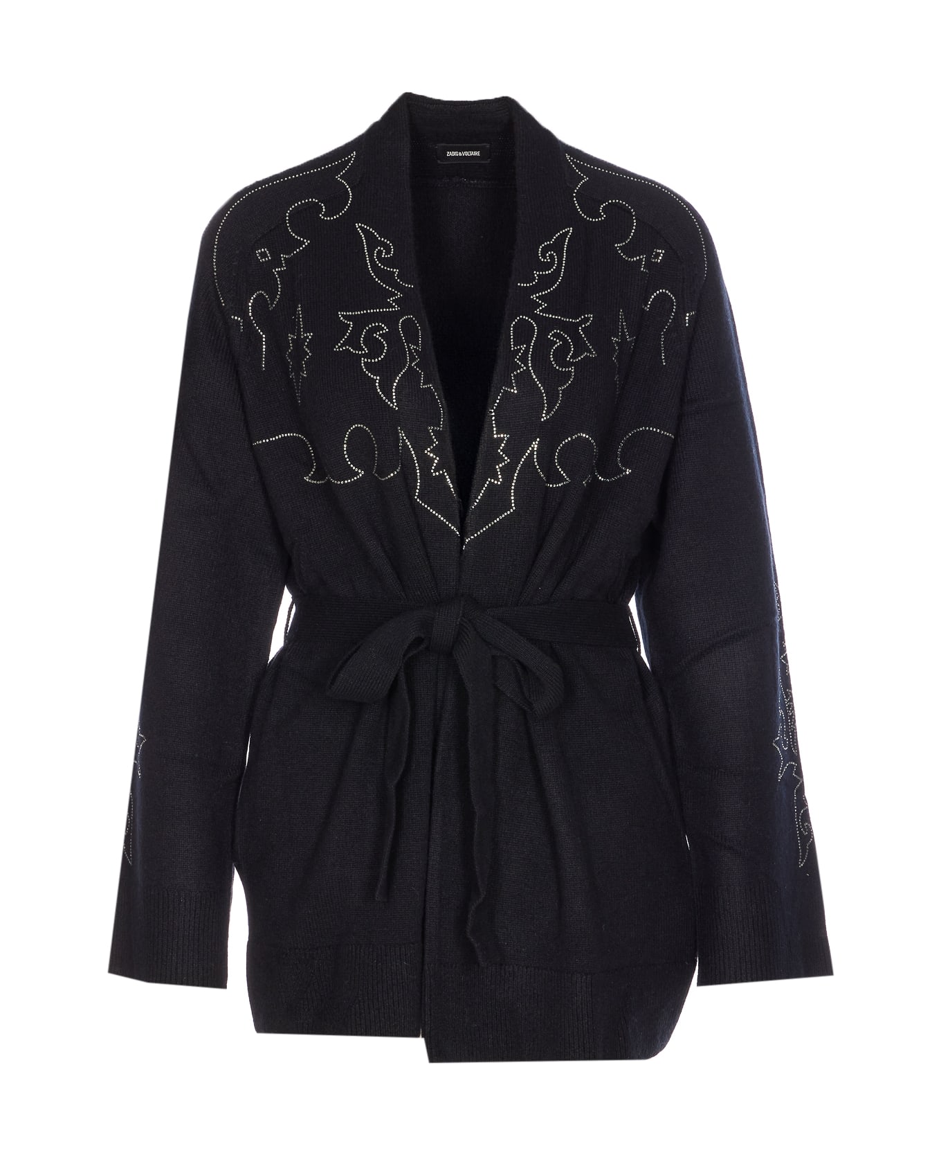 Zadig&Voltaire black Salomy wa West strass cardigan, belt on waist, long sleeves, V-neck, pockets