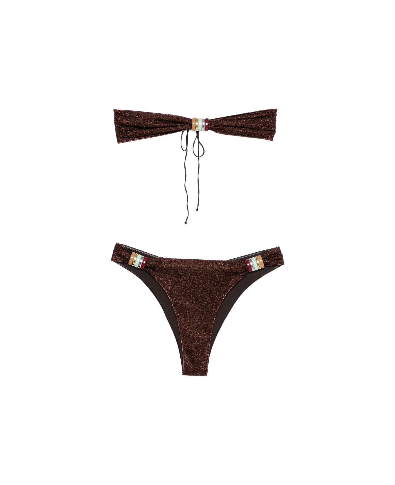 chocolate brown glitter embellishment multi-tone embellishment tie detail lined Be mindful to try on swimwear over your own garments.