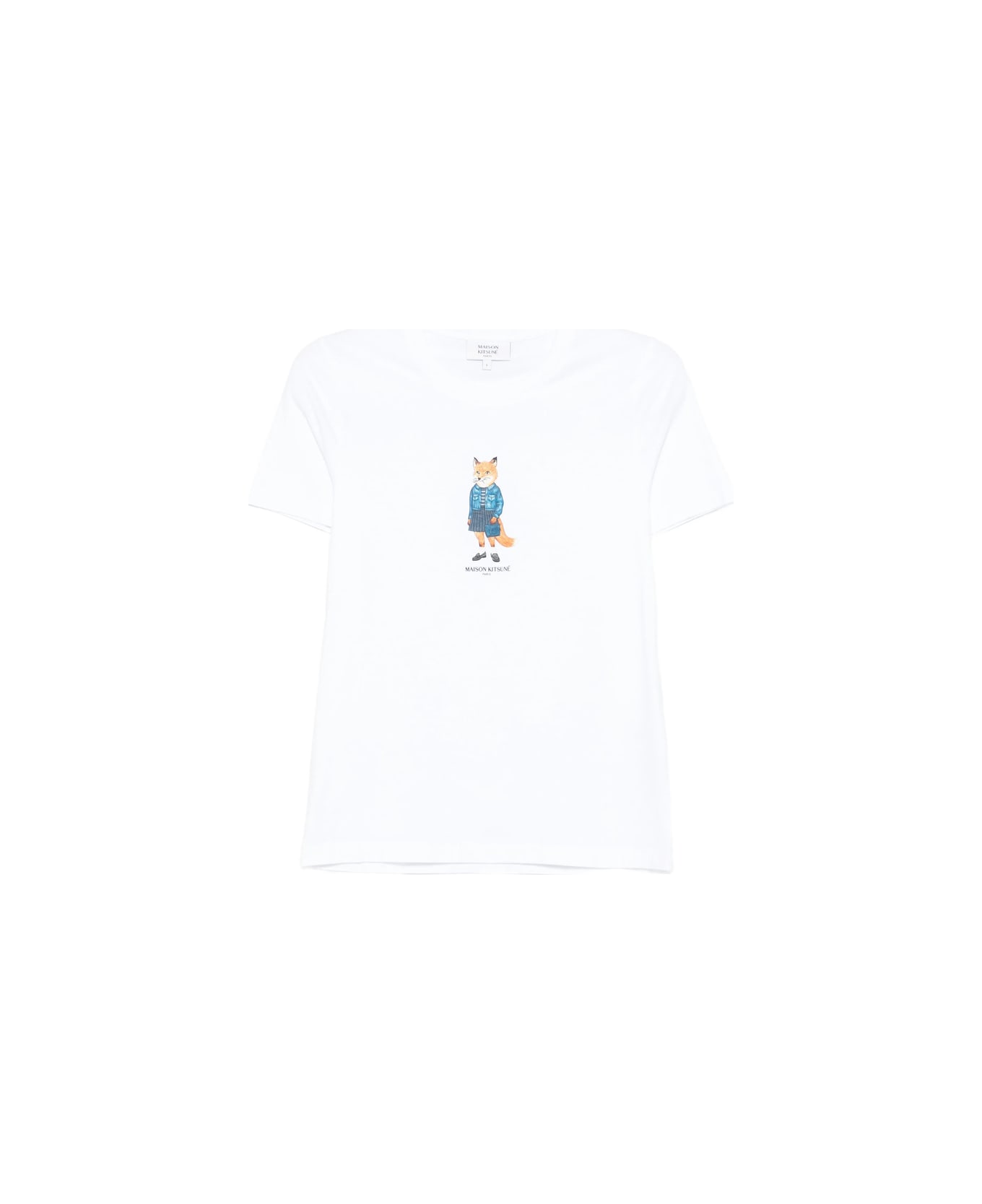white cotton fabric fox-graphic print short sleeves crew neck straight hem