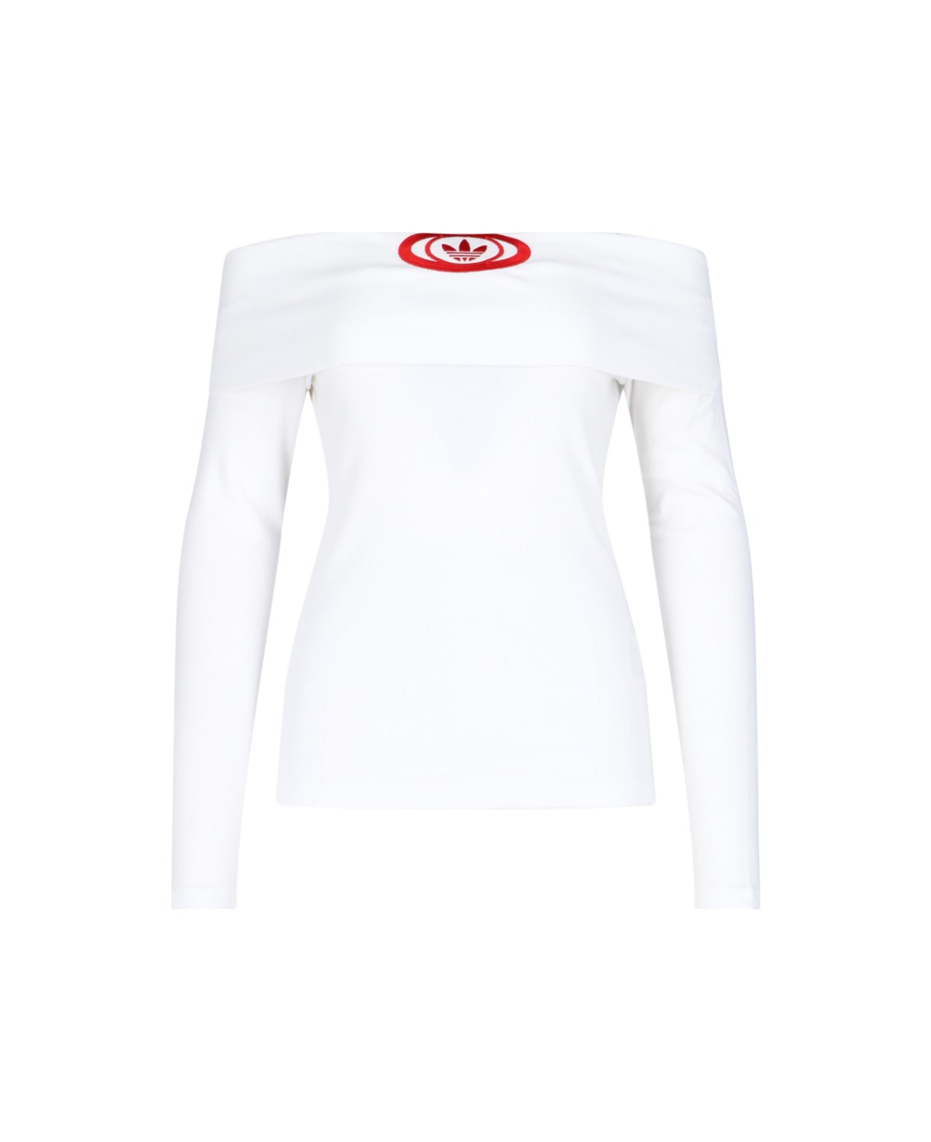 Adidas Originals top in viscose and white cotton with ribbed pattern, round neckline, dropped shoulders, red "Trefoil" logo embroidery on the front, straight hem.