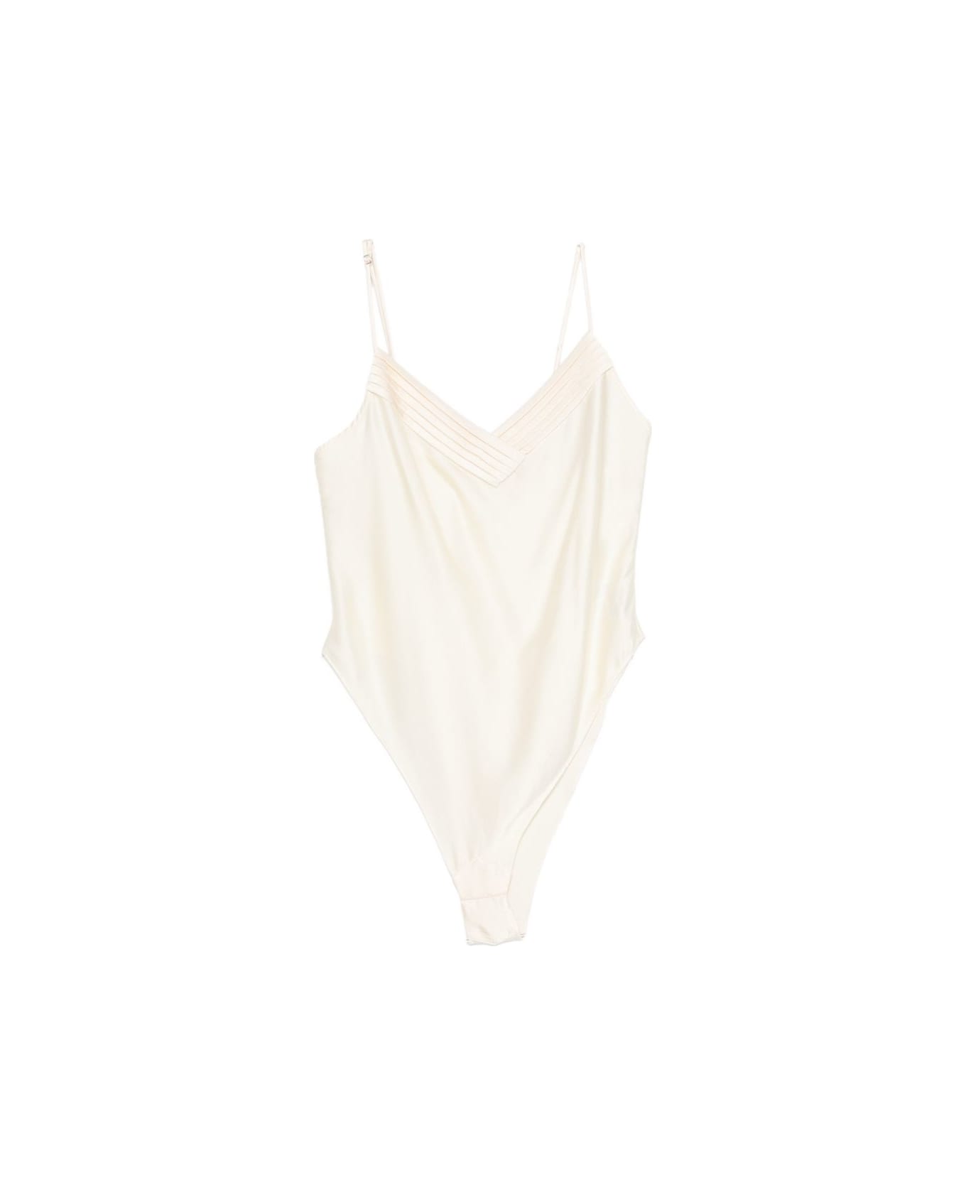 light beige V-neck slim straps pleated detail Just a reminder that this piece must be tried on over your own garments.