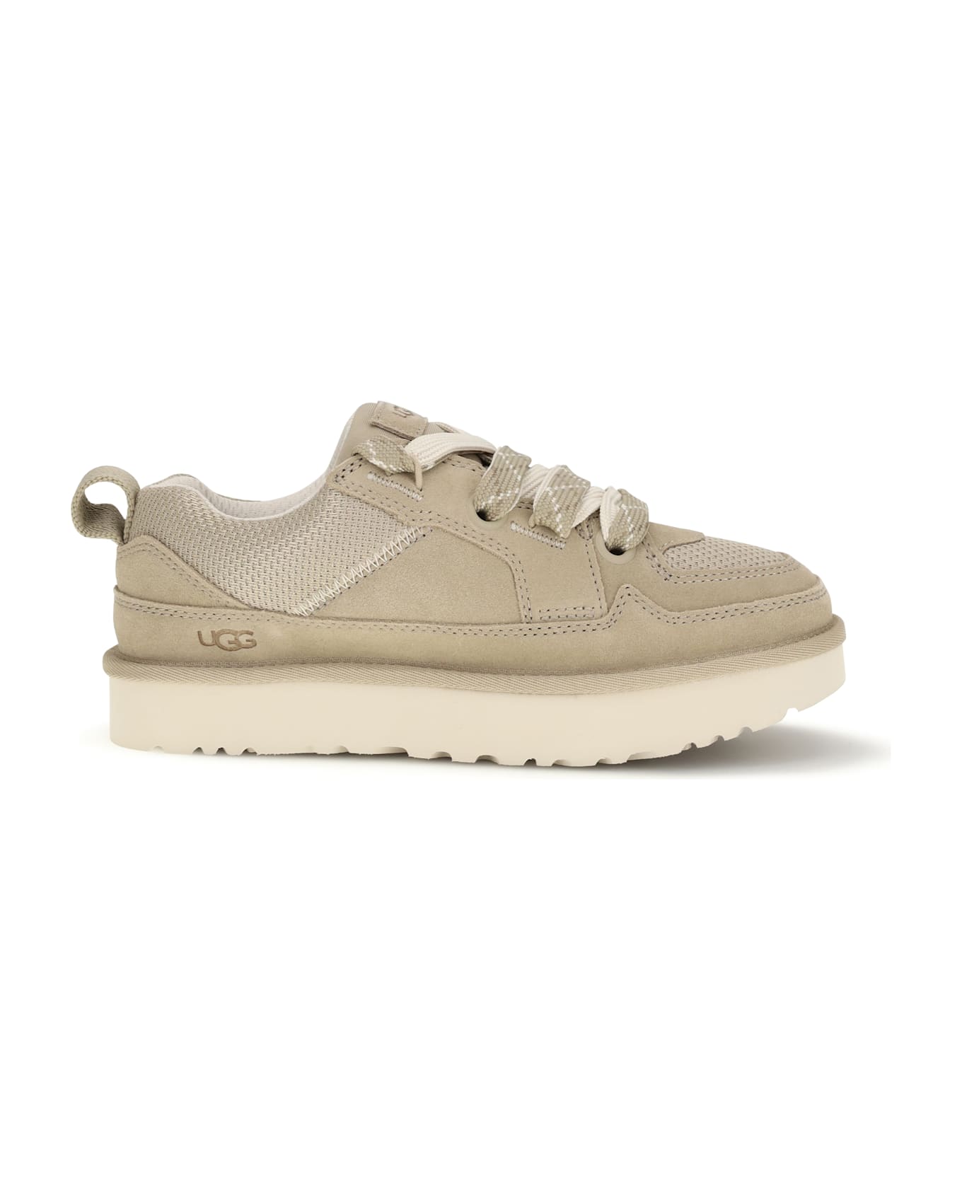 The lo lowmel sneakers by ugg combine casual style and contemporary comfort in a distinctive design. the upper is made of suede combined with recycled woven canvas mesh for a modern, material-conscious look. the durable fabric heel strap and ugg® logo appliqué add functionality and recognizability, while the oversized padded tongue ensures a comfortable fit. the two-tone flat lace and double lacing system complete the model, ensuring practicality and stability during everyday use.