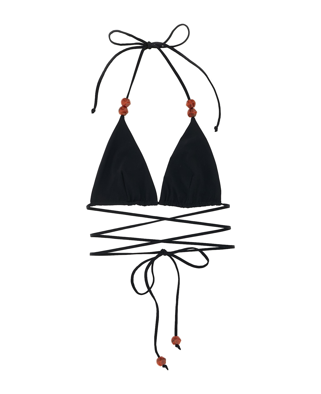 Triangle bikini top RE 26 with adjustable lacing and beaded details. Composition: 75% polyamide, 25% elastane