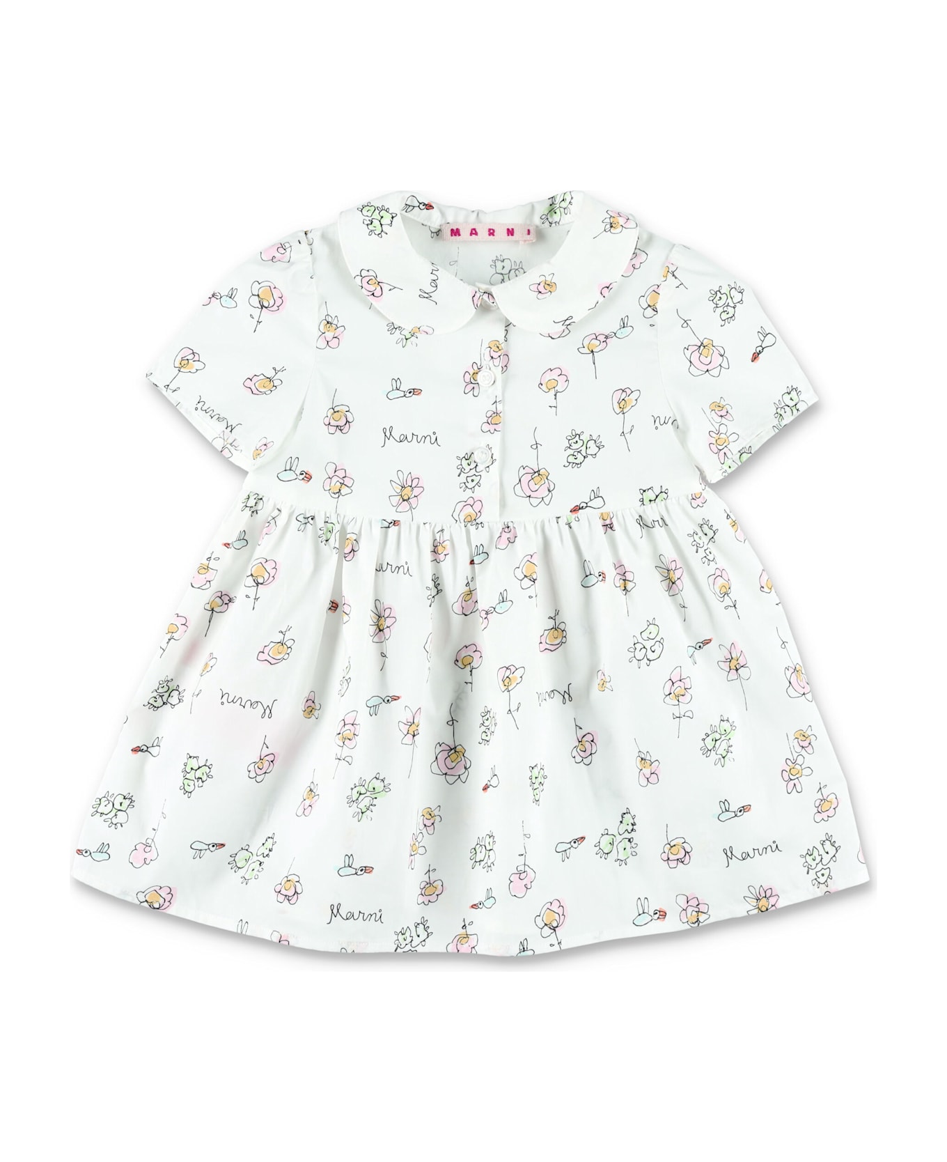 This Marni Baby Dress Combines A Playful Spirit With Refined Design, Offering Everyday Elegance For Little Ones. Crafted From Soft Cotton, It Features An All-over Floral And Illustrated Print That Recalls The Brand s Iconic Creative Language. The Rounded Collar And Gently Gathered Silhouette Enhance Comfort And Freedom Of Movement, Making It Perfect For Both Casual Moments And Special Occasions. Lightweight, Breathable Cotton