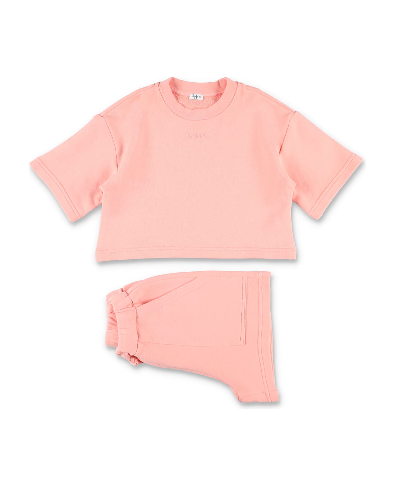 Cotton Sweatshirt And Short Set By Il Gufo. Featuring: Sweatshirt: Crew Neck Short Sleeves Tonal Logo Embroidery At Front Boxy Fit Shorts: Elastic Waistband With Drawstring Front Patch Pockets