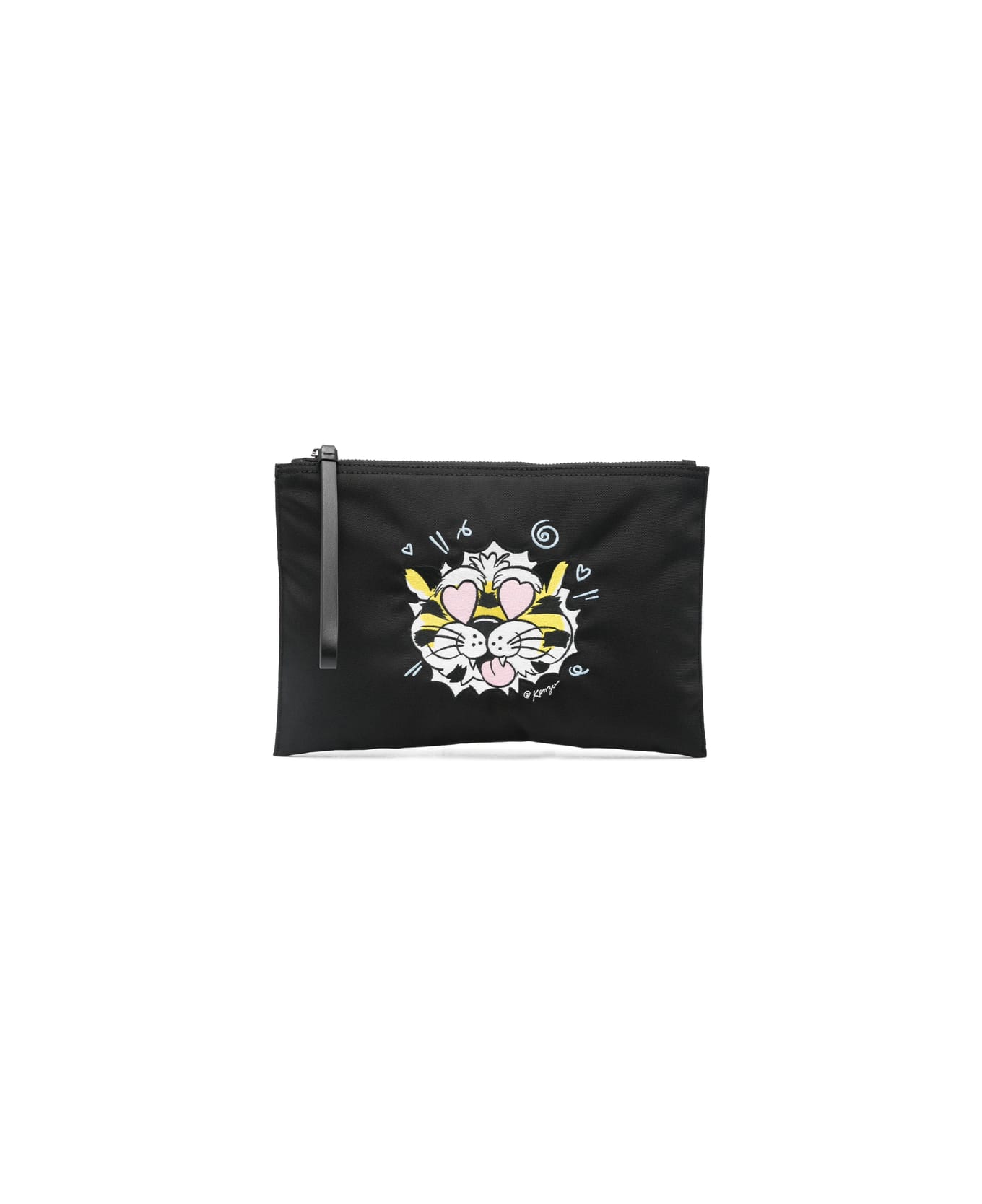 black graphic print wrist strap zip closure This piece comes complete with a protective dust bag.
