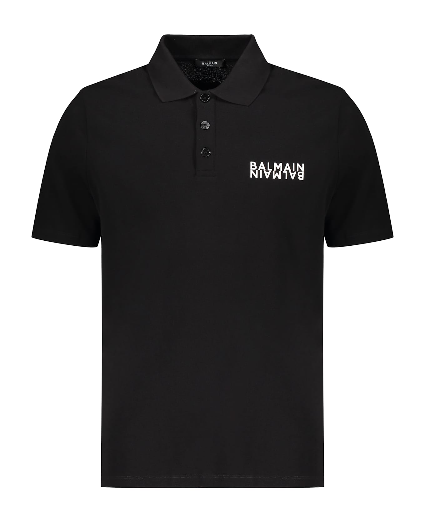 Polo in black color with short sleeves, made of a soft and durable fabric. it features a classic collar and button closure. on the left side of the chest, there is a contrasting logo that adds a touch of style. this polo is ideal for casual occasions or for a sporty-chic look.